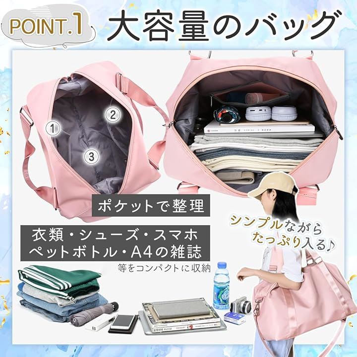 旅行用 ボストンバッグ 大容量 軽量 防水 キャリーオン対応 2WAY ショルダー付き レディース メンズ ジムバッグ トラベルバッグ