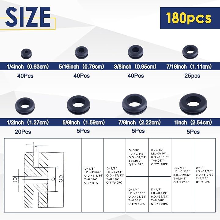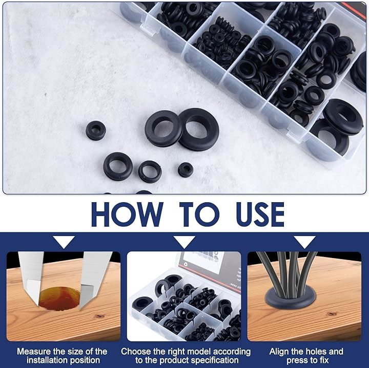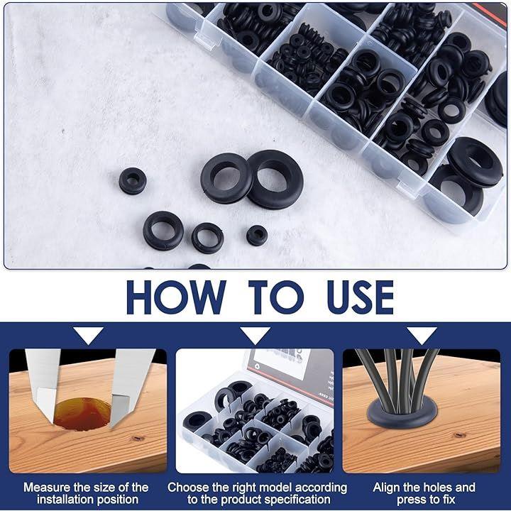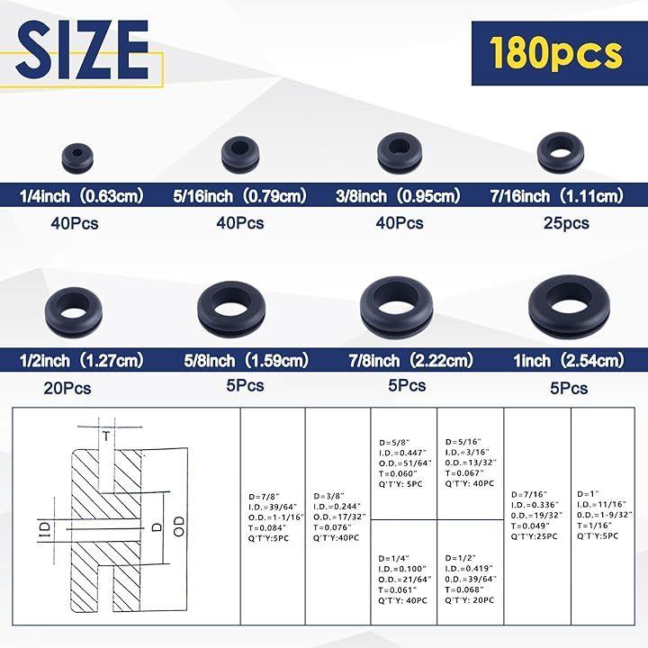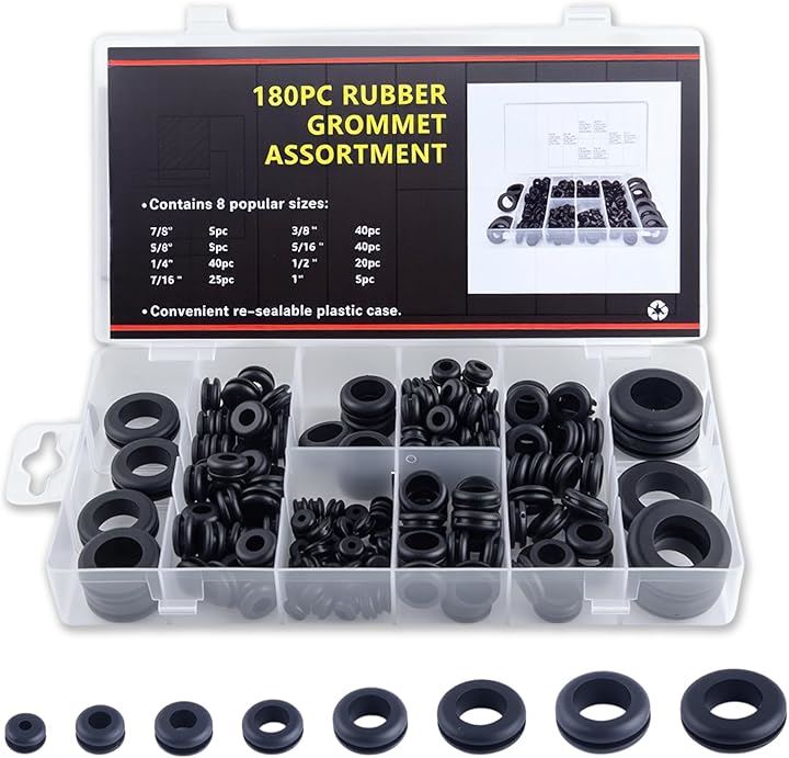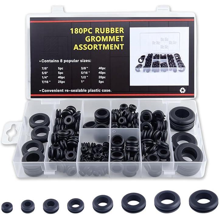 180個セット ゴム製グロメットキット ゴムグロメットキット ラバーグロメットキット 電気ゴムグロメット 両面保護 配線保護ワイヤー保護用 ケーブル保護 DIY修理ツール 8種類サイズ 収納ケース付き