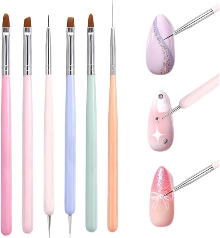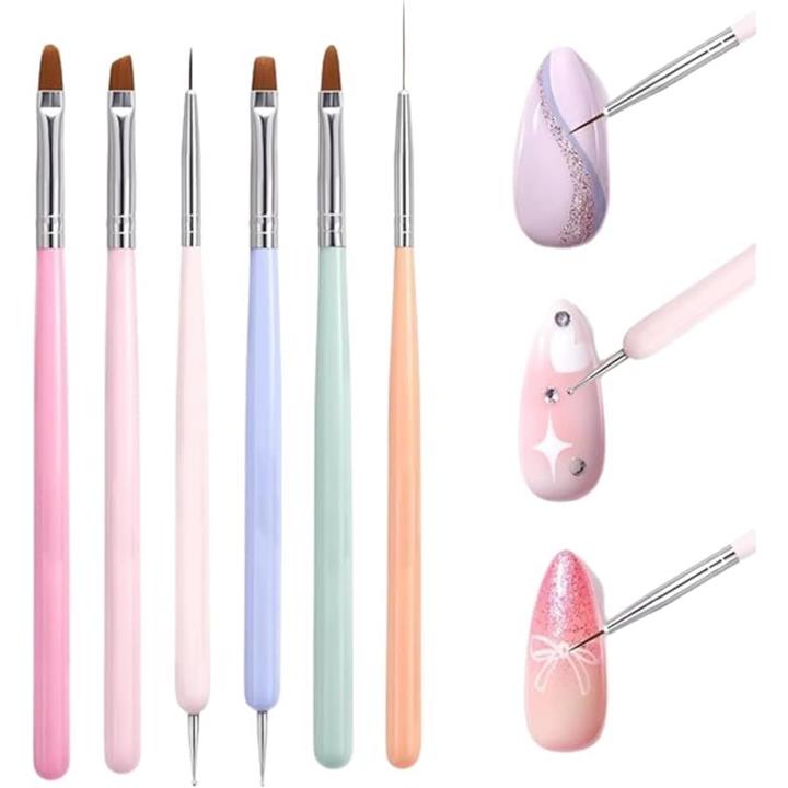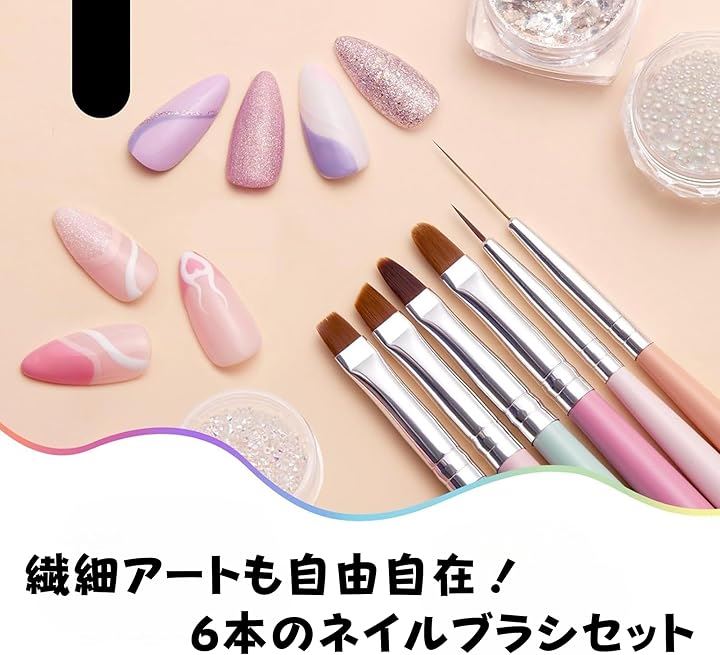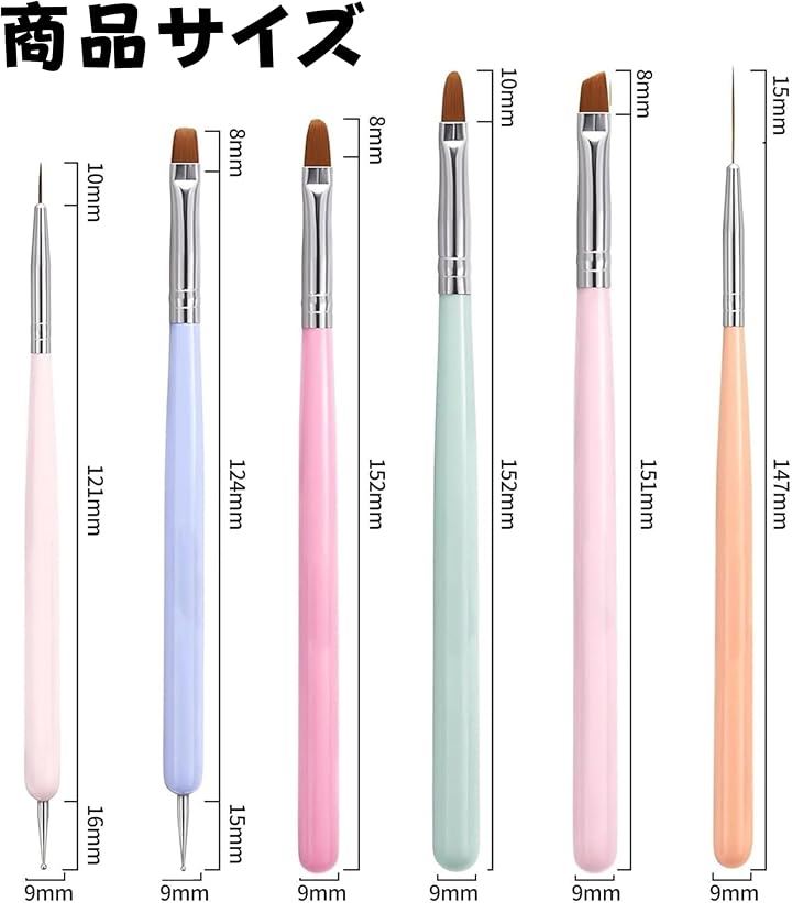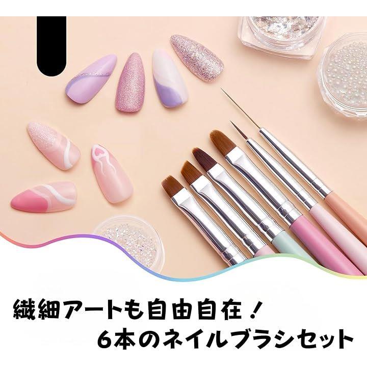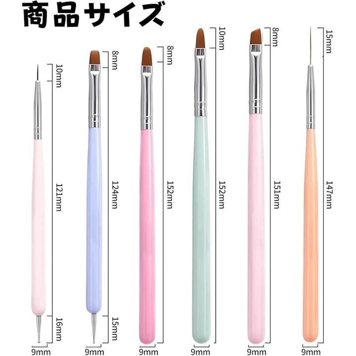 ネイルブラシセット 6本入り ジェルネイル用 初心者からプロまで対応 カラフルハンドル