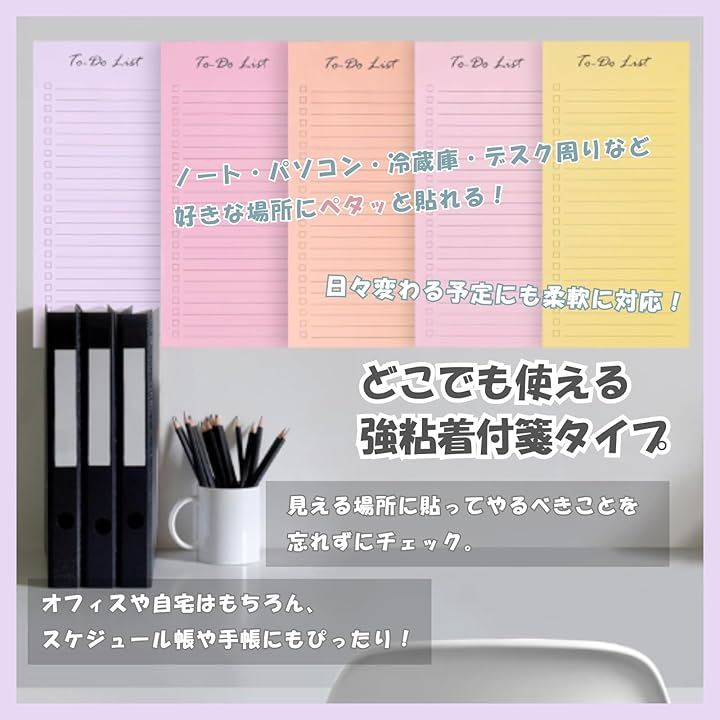 TODOリスト 付箋 50枚 大きめ 強粘着 タスク管理 メモ帳 シンプル 可愛い 文房具 時間管理 罫線入り やることリスト