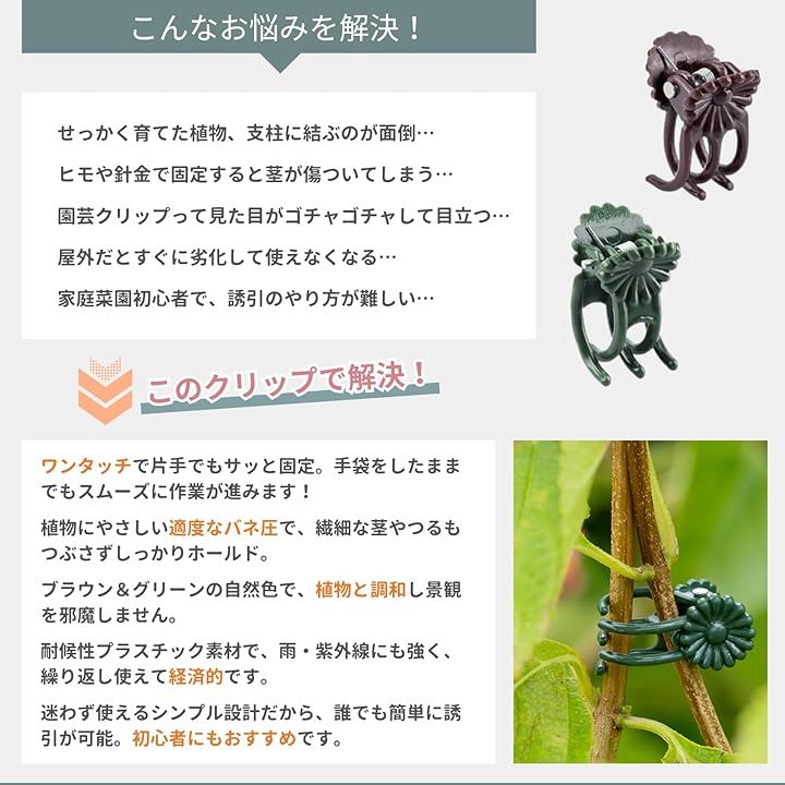 誘引クリップ 園芸 支柱固定 植物サポート 接ぎ木用 トマト きゅうり 洋蘭 つる植物 連結 農業資材 50個セット