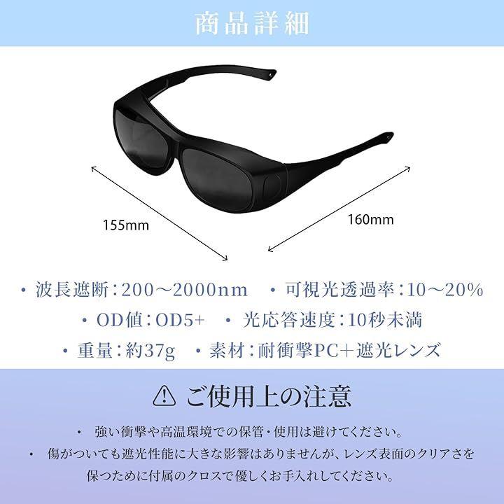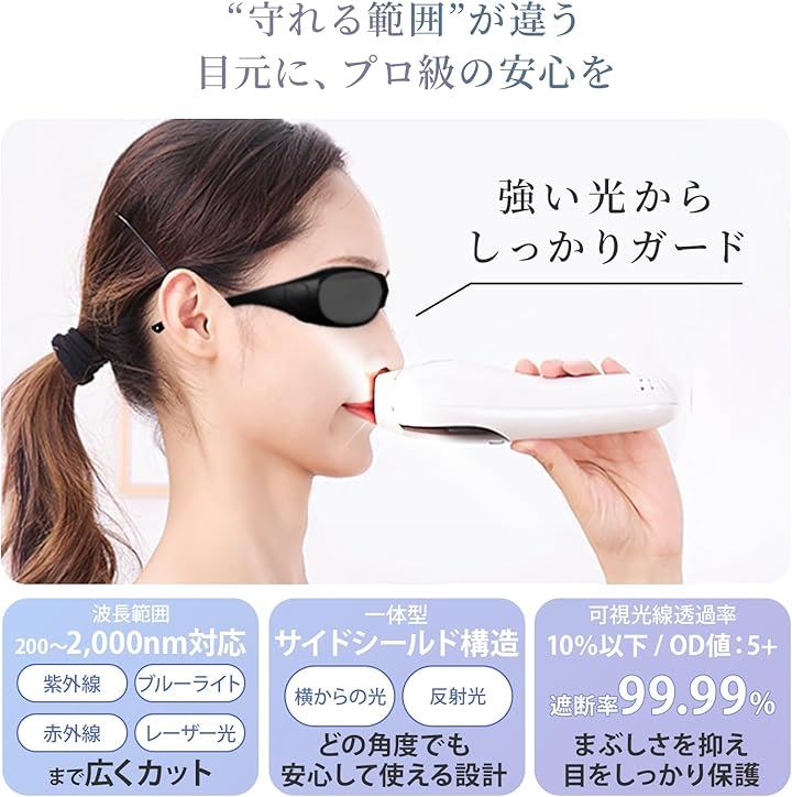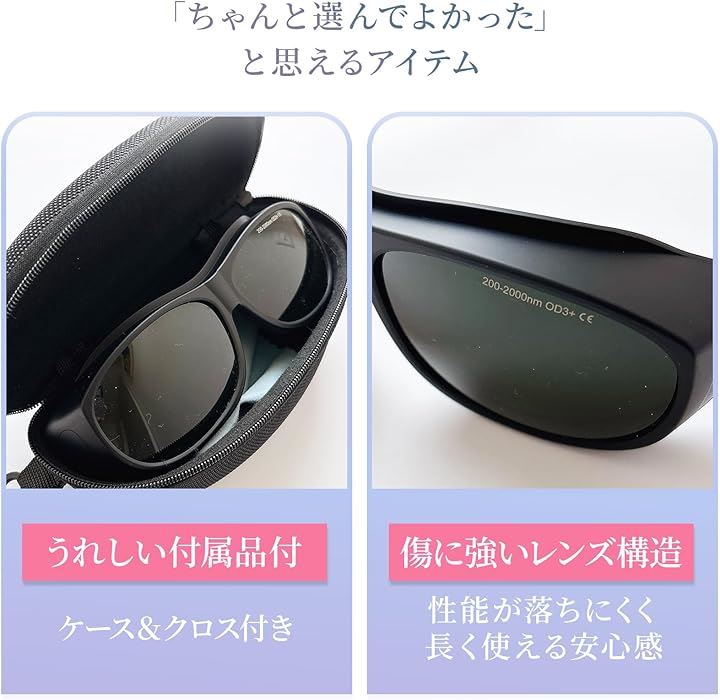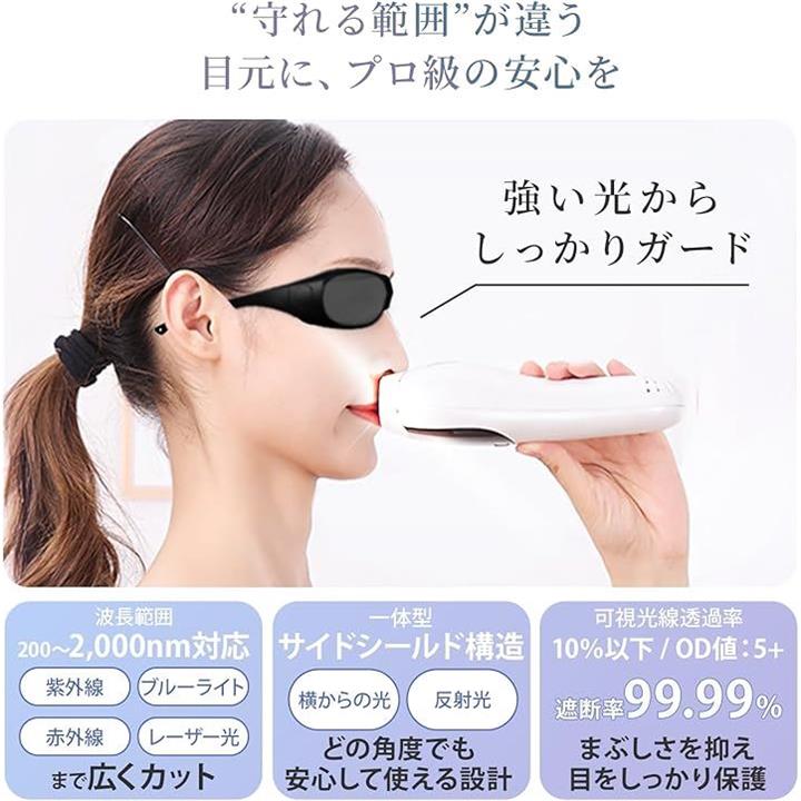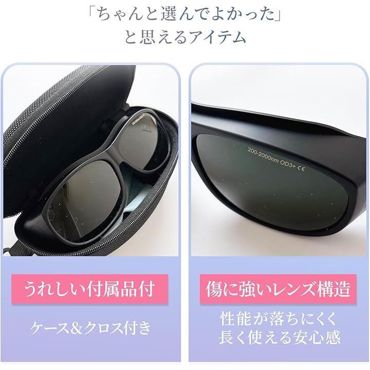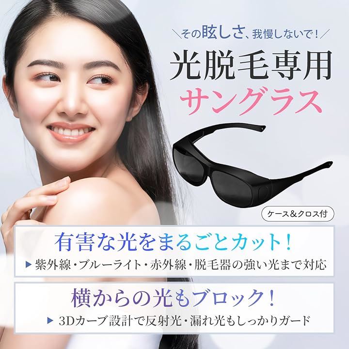脱毛専用サングラス ケース付き軽量 遮光サングラス 3Dカーブ設計 光ブロック 保護メガネ