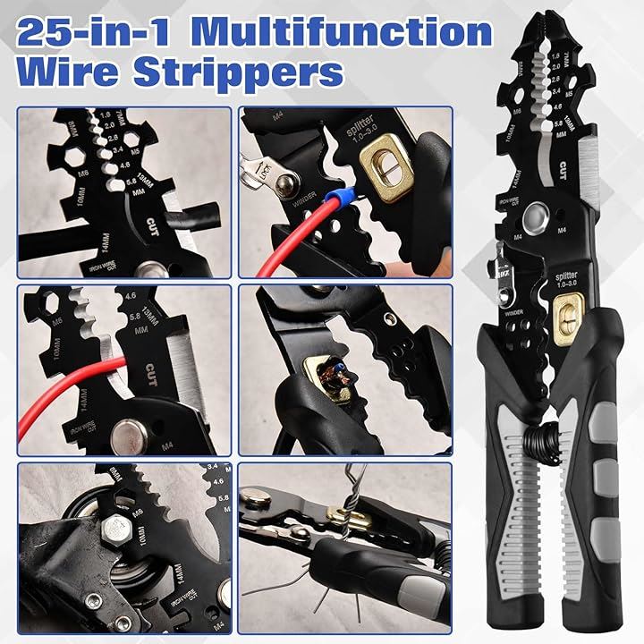 25-IN-1多機能ワイヤーストリッパー ワイヤーストリッパー機能付き 圧着機能付 切断可能 ワイヤーカッター 電気ドライバー プロ用電線ストリップ工具 細線 電線皮剥き機 配線 被覆剥き 電工工具