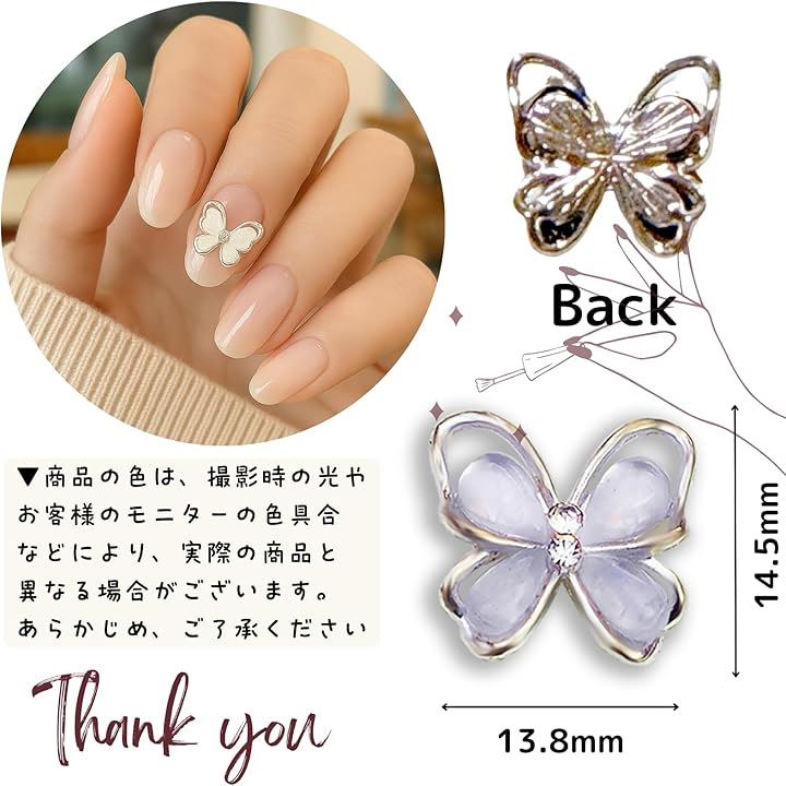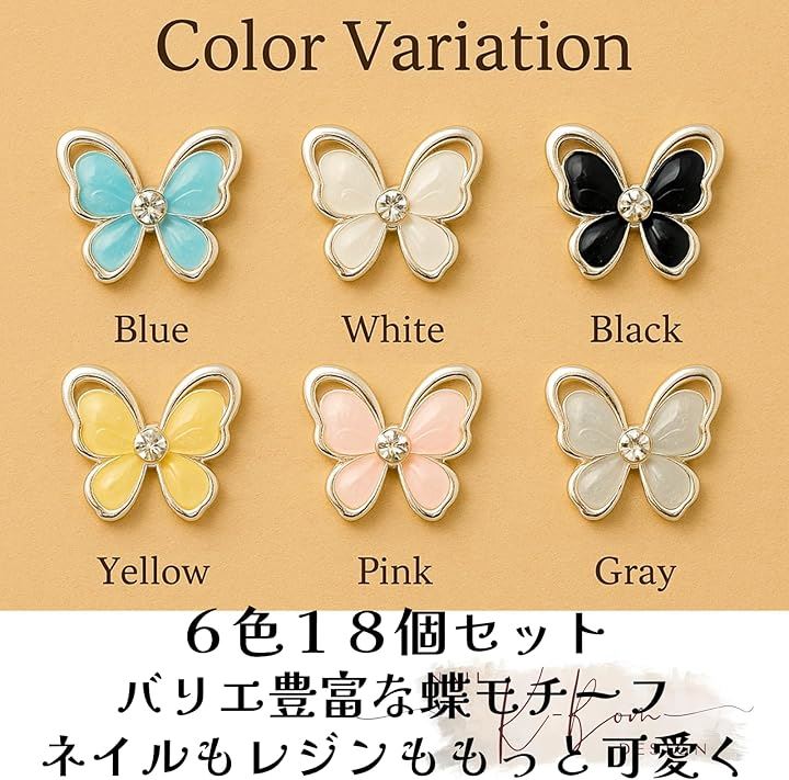 ネイルパーツ 蝶 バタフライ 立体 6色 3個ずつ 18個セット レジン デコパーツ ガーリー ワンホンネイル ジェルネイル 飾り 小物 アクセサリー ハンドメイド 材料