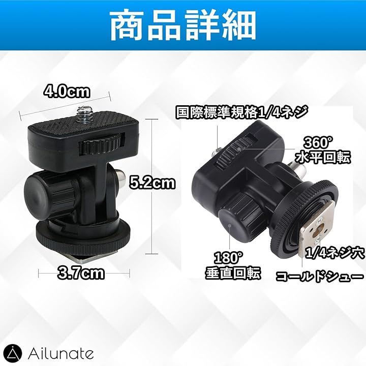三脚マウントアダプター 1/4インチネジ山コールドシューカメラマウントアダプター カメラコールドシューアクセサリー