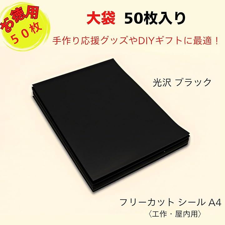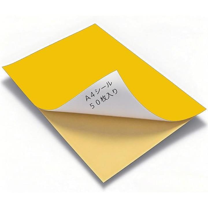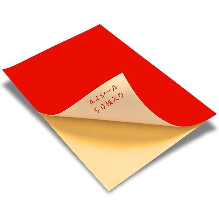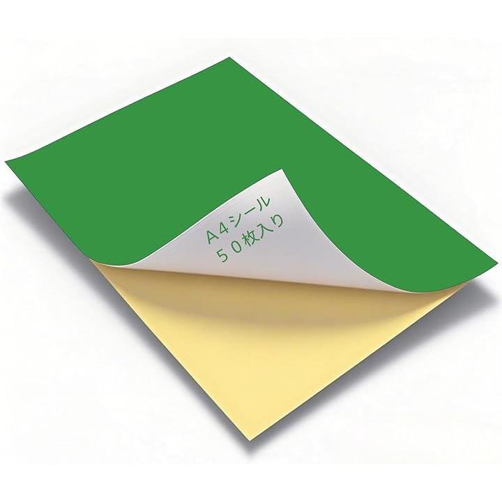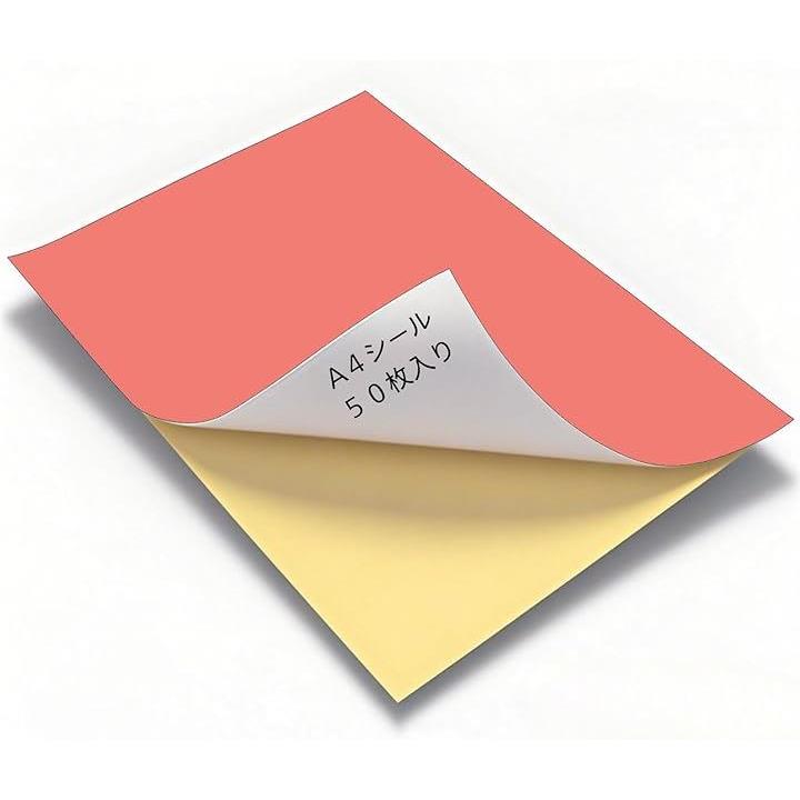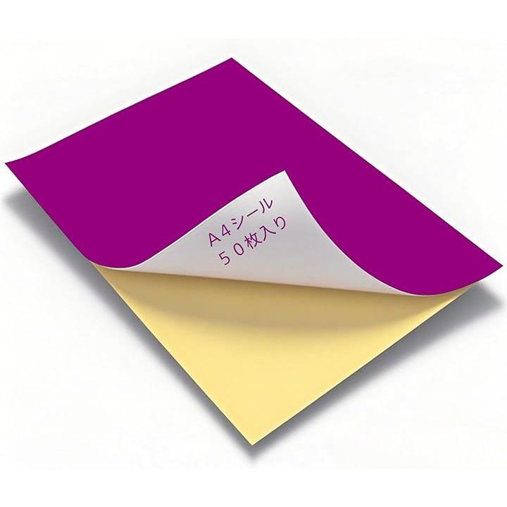 カラーシール A4 シール用紙 ノーカット 光沢 フリーカット 手作り うちわ カラーシート 粘着 お徳用 大袋 50枚