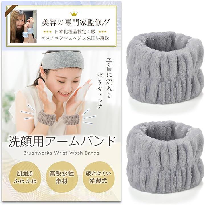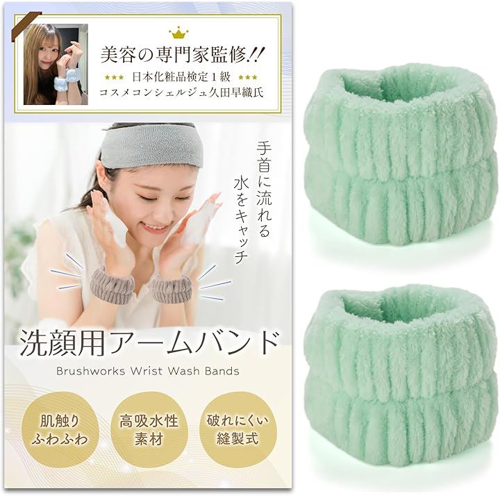 「美容の専門家監修..洗顔用アームバンド」日本化粧品検定1級、コスメコンシェルジュである久田早織氏が監修。「顔を洗う時に袖口が濡れてしまうのが不快」「洗顔後に床が濡れて拭くのが面倒」「袖が濡れないよう前屈みになると体がツラい」そんなお悩みを持つ方にぴったりのアイテムです。