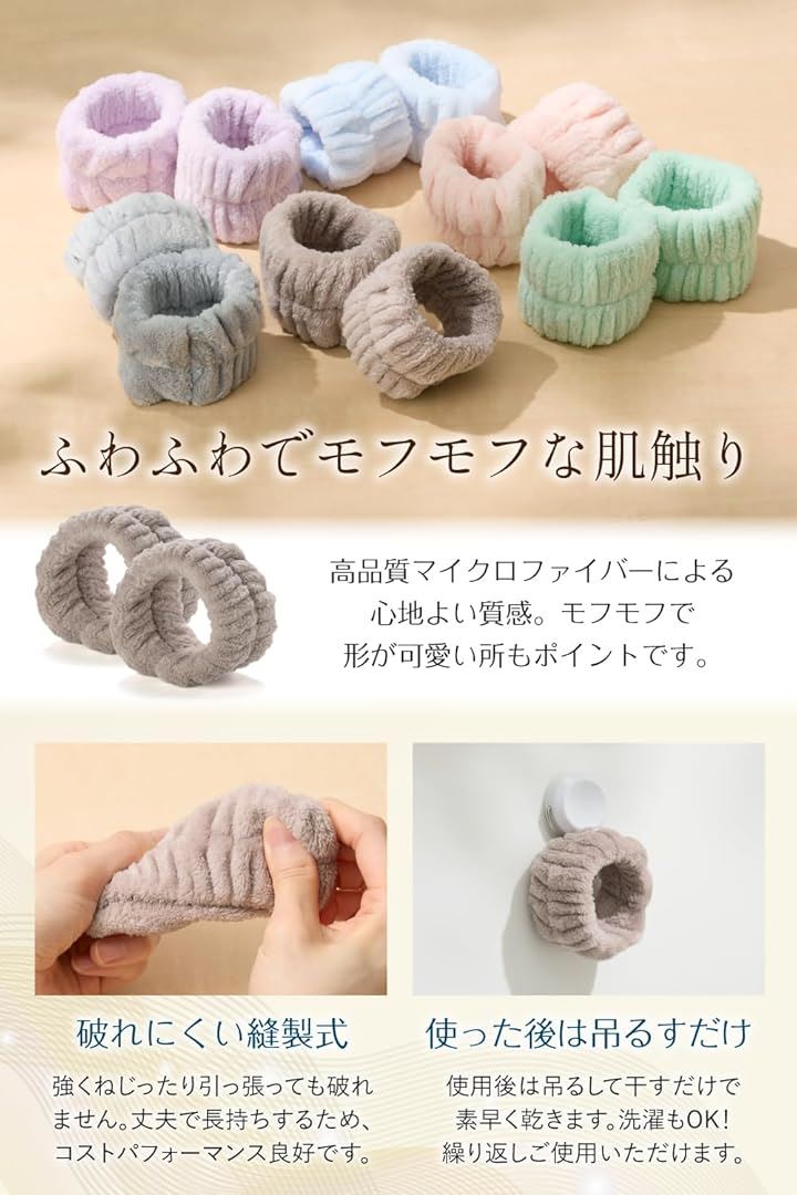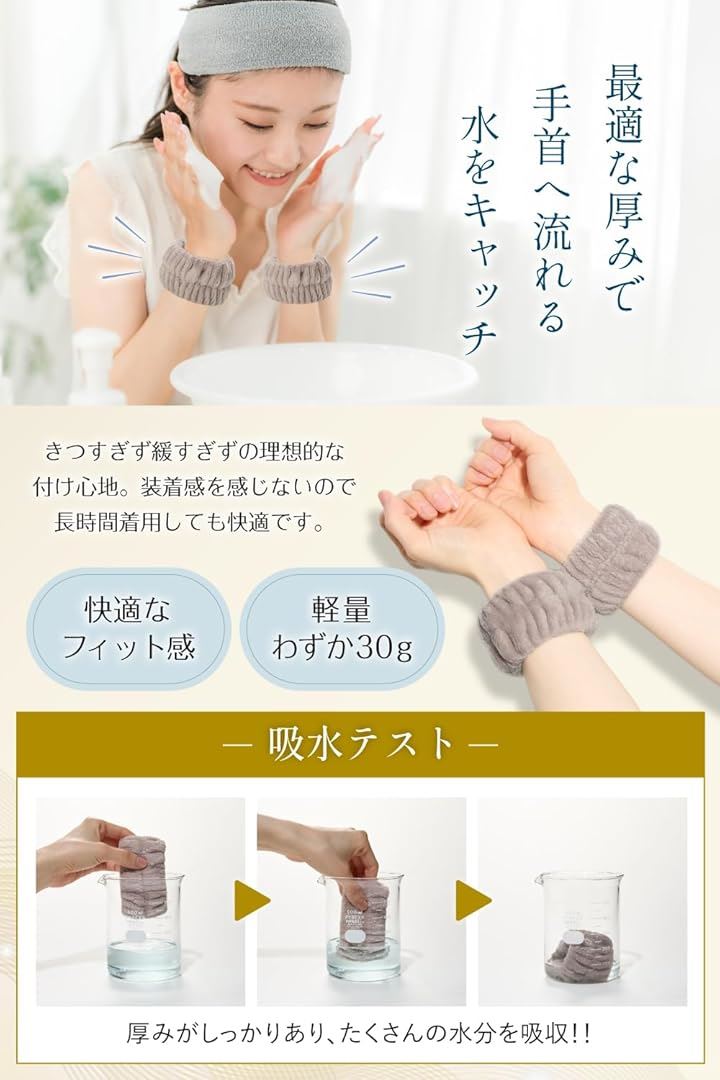 洗顔 リストバンド 「コスメコンシェルジュ監修」袖 バンド アームバンド 水仕事 超吸水 速乾 伸縮性 ふわふわ 柔らかい 手首用汗止め マイクロファイバー [FigNest] |
