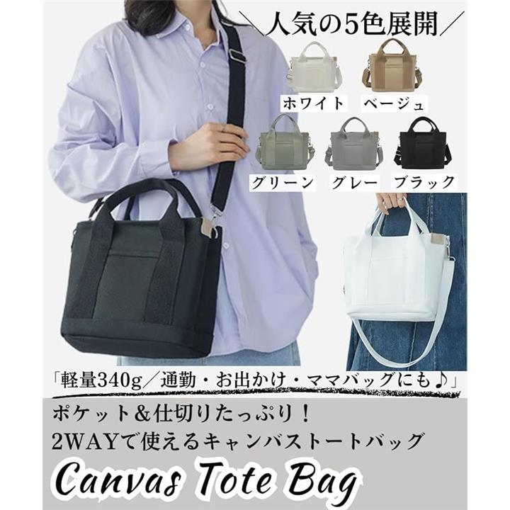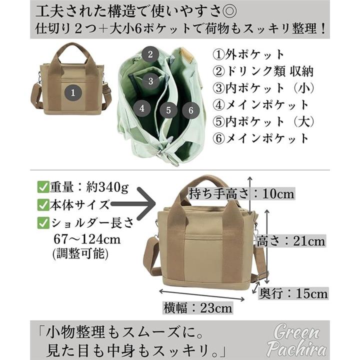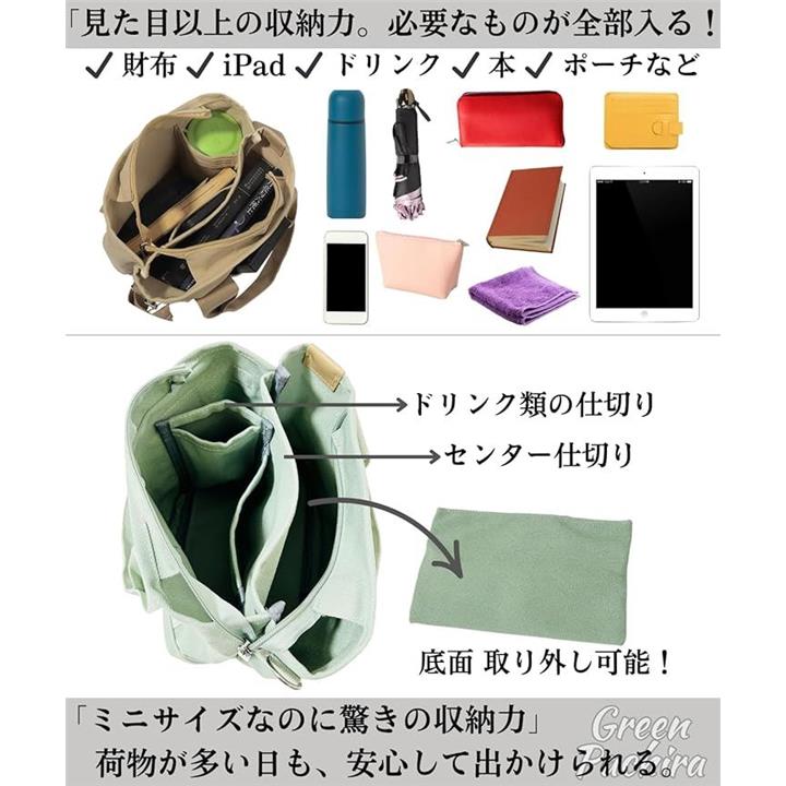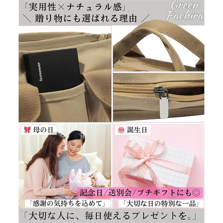 [グリーンパキラ] はんぷ手提げバッグ トートバック 帆布製 キャンバスバッグ 2WAY ペットボトルが入る ショルダーバッグ 女性用 人気 レディース 斜めがけ ハンドバック 軽量 仕切り付き チャック付き 多機能 |
