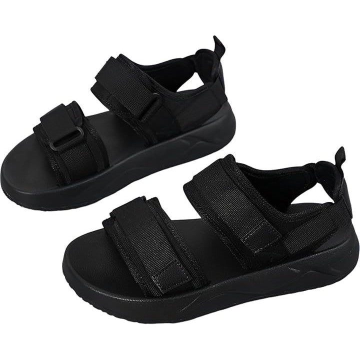 *つま先・甲に調節可能な面テープ付きベルトを配置した2連ベルトデザインのスポーツサンダル