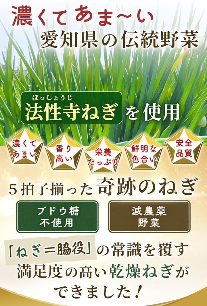 愛知の伝統野菜使用 奇跡のねぎ 乾燥ネギ 15g 愛知県産 ブドウ糖不使用 減農薬栽培 愛知の伝統野菜”法性寺ねぎ”のみを使用