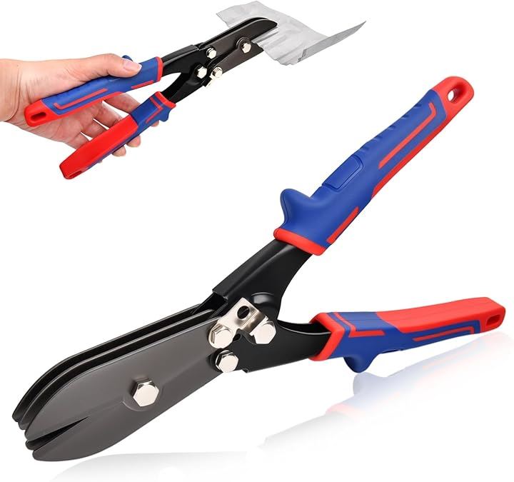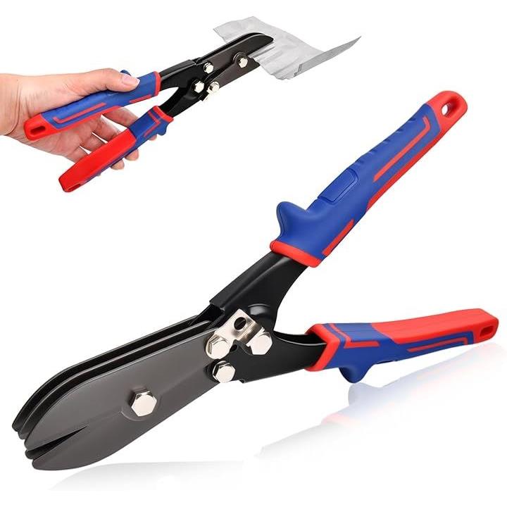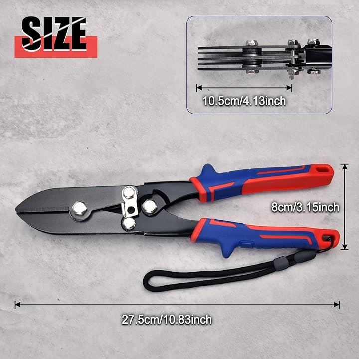 5枚刃 ハンドクリンパー シートメタルツール 板金圧着工具 22-28ゲージ ストーブパイプクリンパーツール 樋エンドキャップ 高炭素鋼製 滑り止めグリップ 落下防止ストラップ 安全ロック付き ダウンスパウトとストーブパイプ用 ダクト圧着工具 黒松コード付き