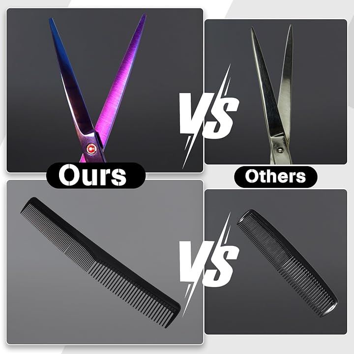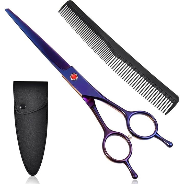 6.5インチ 散髪カットハサミ 革嚢付 コーム付 ステンレス刃物鋼 髪切りハサミ ヘアフラットカット鋏 メンズセルフ シザー プロ 初心者 美容師 理容師 子供の散髪 毛量調整 質感調整 滑らかな動き細やかな職人技理髪師 家庭用
