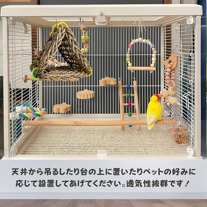 ロープの長さも適度に調整可能で、ケージのどの位置にも取り付けやすく、飼い主のレイアウトの自由度を広げてくれます。
