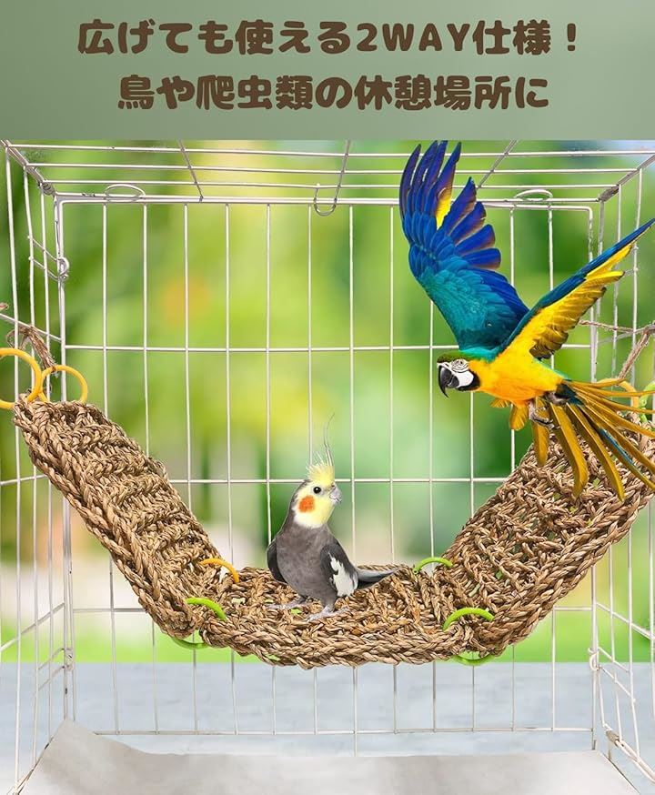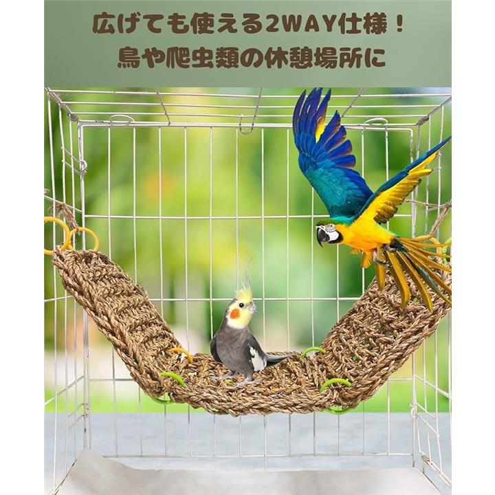 通常は隠れ家としてリラックスできるスペースを提供し、鳥小屋から取り外せば、ハンモックとしての役割を果たします。