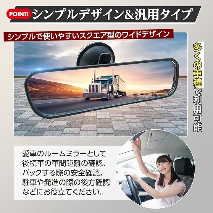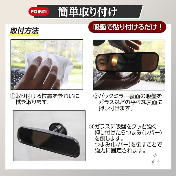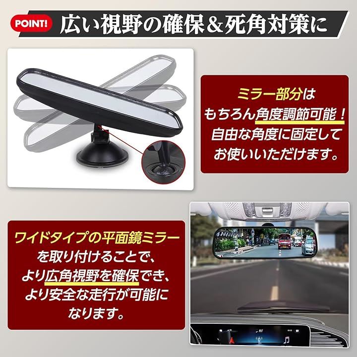 互換品 車用 ルームミラー バッグミラー 2個セット 吸盤 強力 固定 補助ミラー 簡単取付 角度調整可 後席確認 黒 角型 インサイト 軽自動車 普通車 鏡 汎用