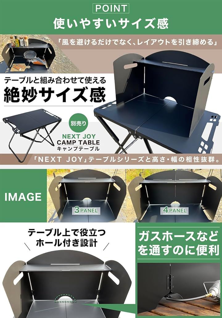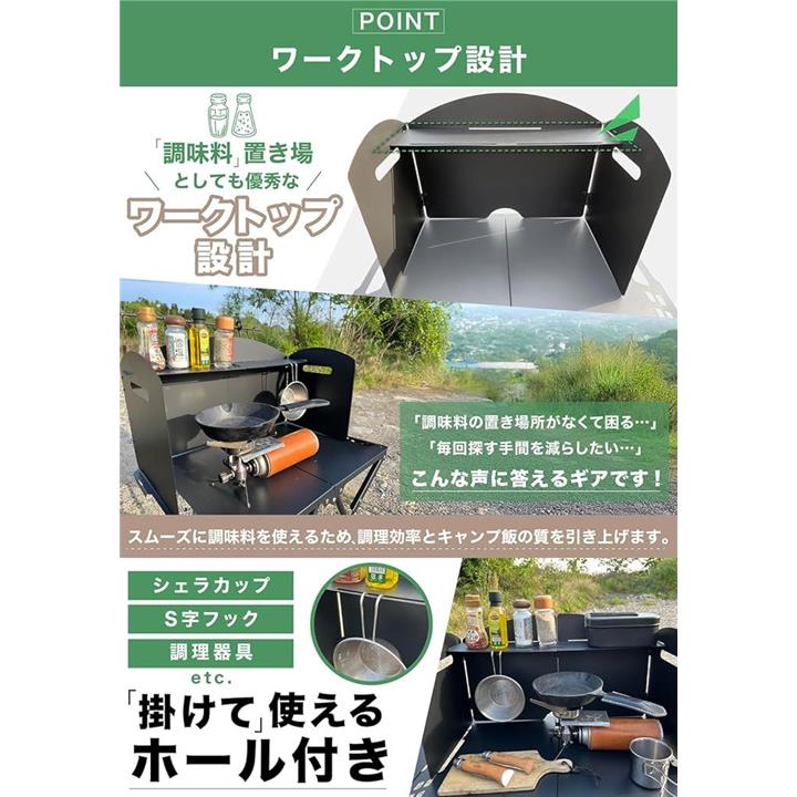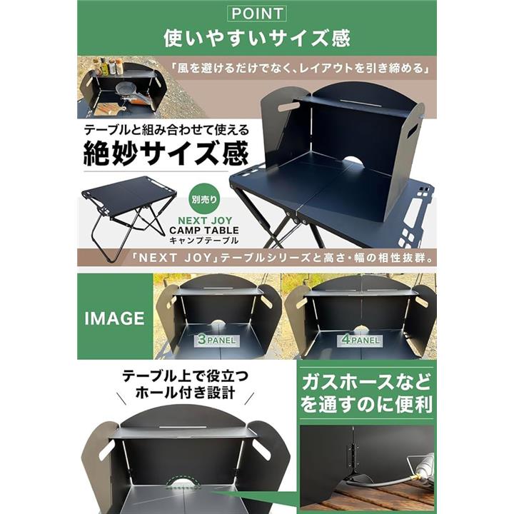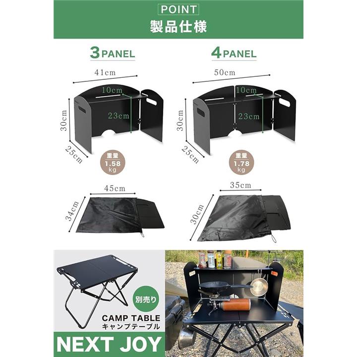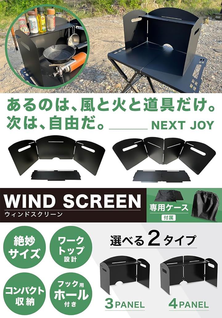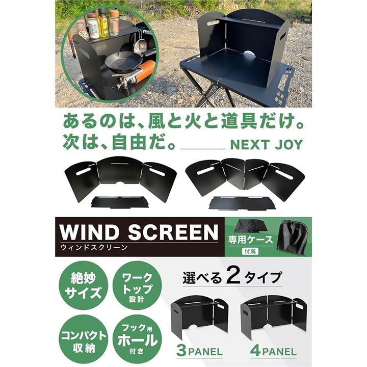 Next Joy ウインドスクリーン キャンプ 風防 コンロ用 風よけ板 調味料ラック 折りたたみ式 小型 収納袋付き