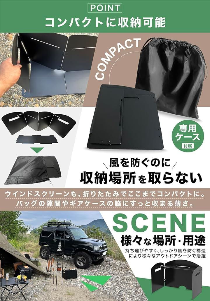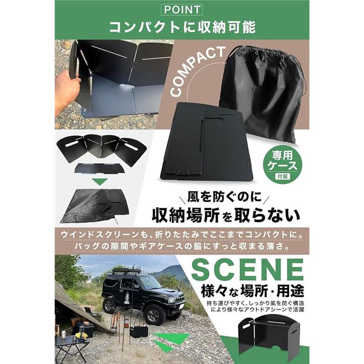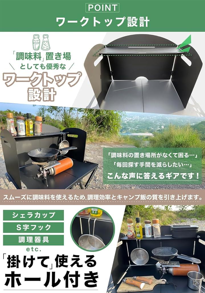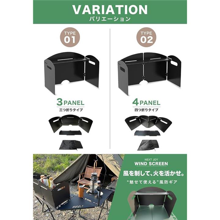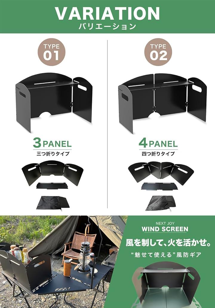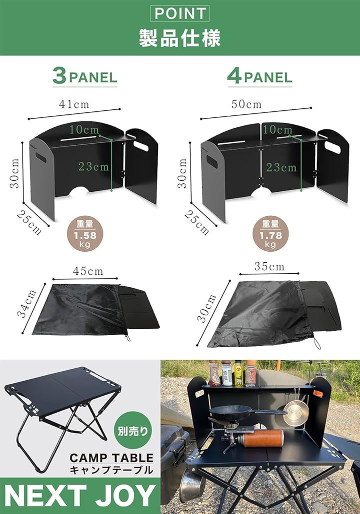 Next Joy ウインドスクリーン キャンプ 風防 コンロ用 風よけ板 調味料ラック 折りたたみ式 小型 収納袋付き