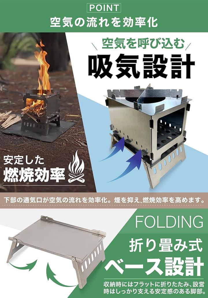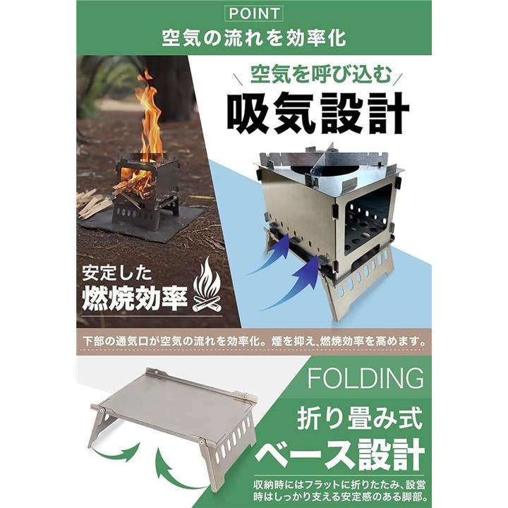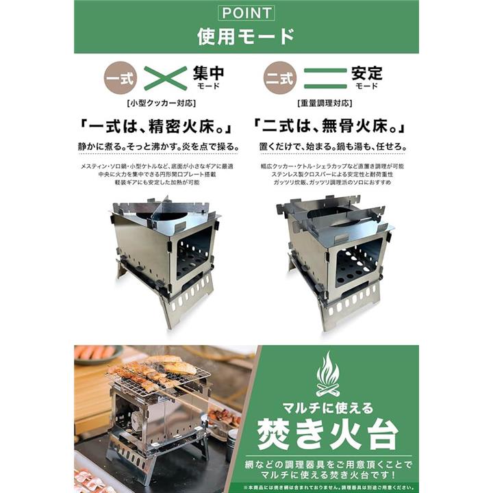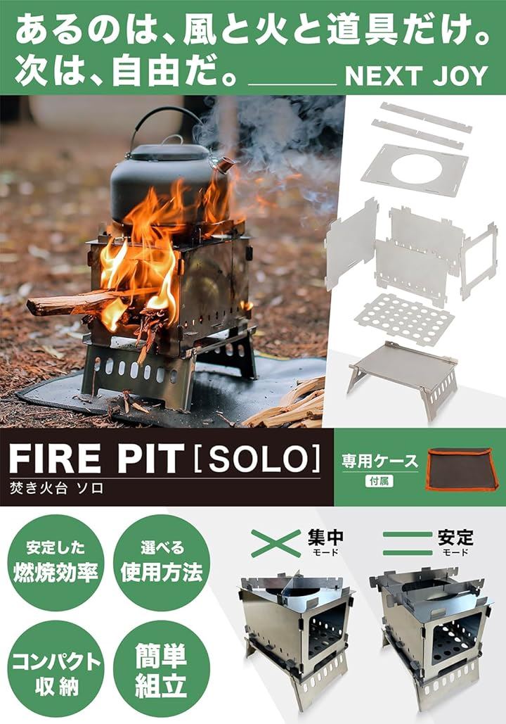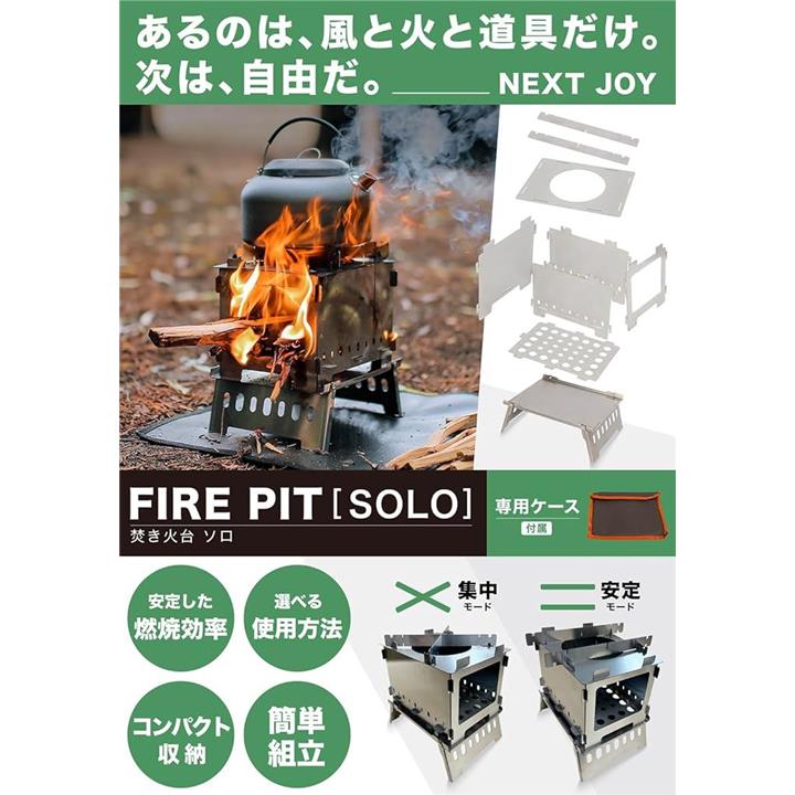 Next Joy 焚き火台 ソロ 二次燃焼 キャンプ ミニ 小型 焚火台 コンパクト 軽量 折りたたみ式 ステンレス製 収納袋付