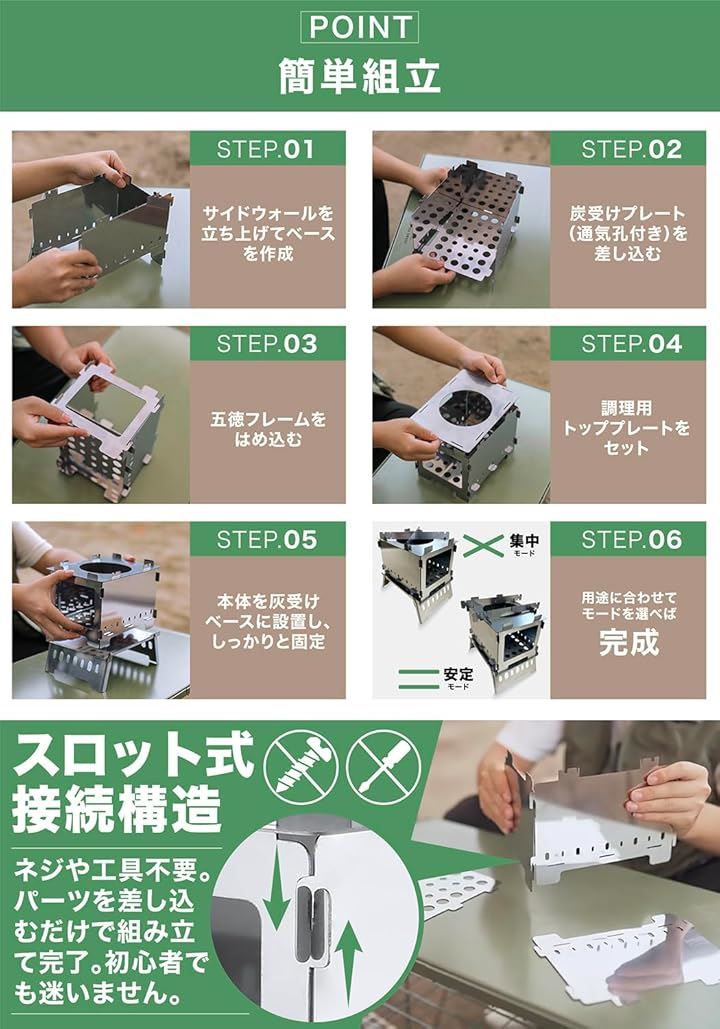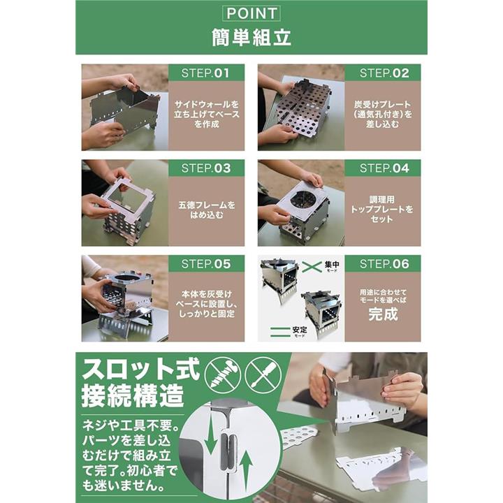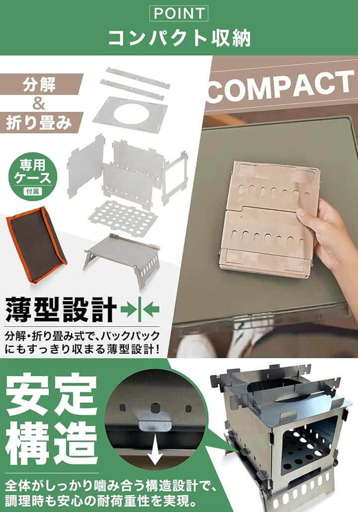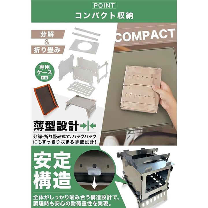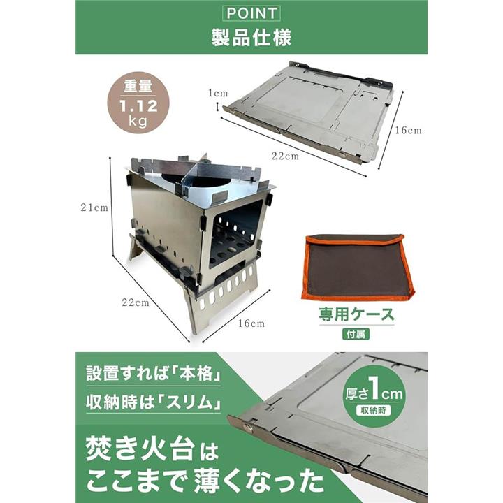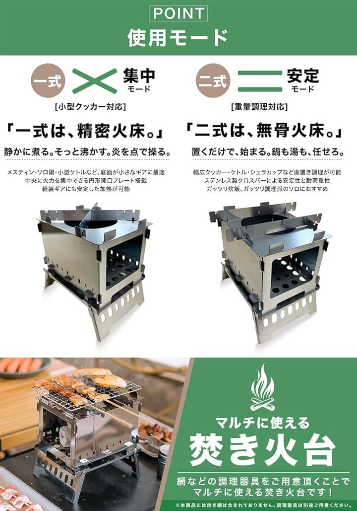 Next Joy 焚き火台 ソロ 二次燃焼 キャンプ ミニ 小型 焚火台 コンパクト 軽量 折りたたみ式 ステンレス製 収納袋付