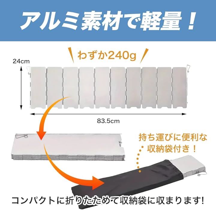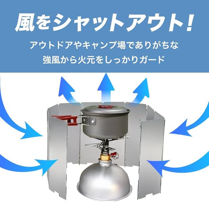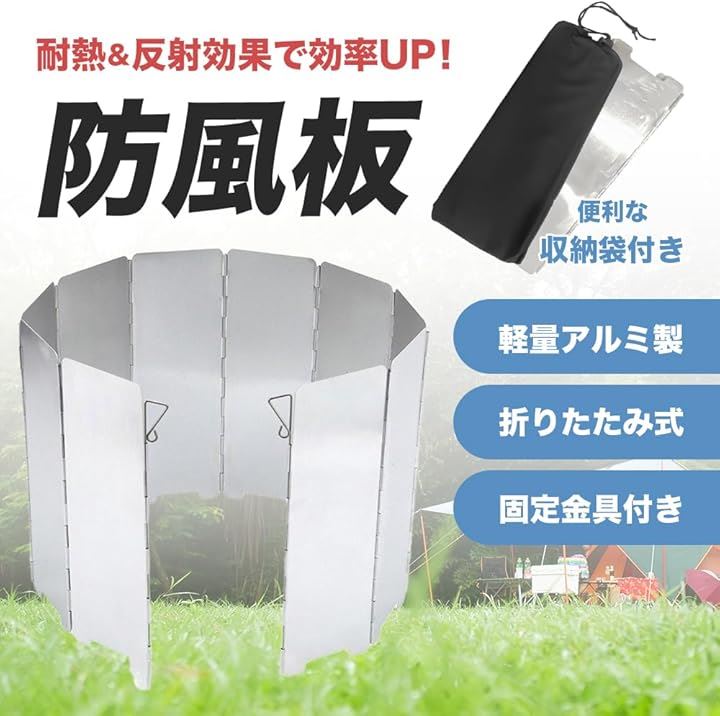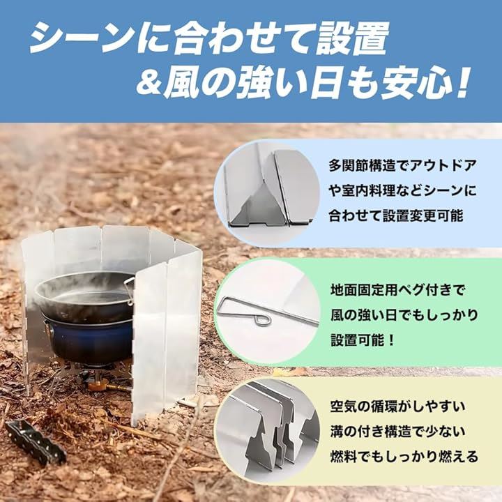 検索キーワードとしては「キャンプ 防風板」「風よけ コンロ用」「ソロキャンプ 風防」「ウィンドスクリーン アルミ」などをお探しの方に特におすすめ。