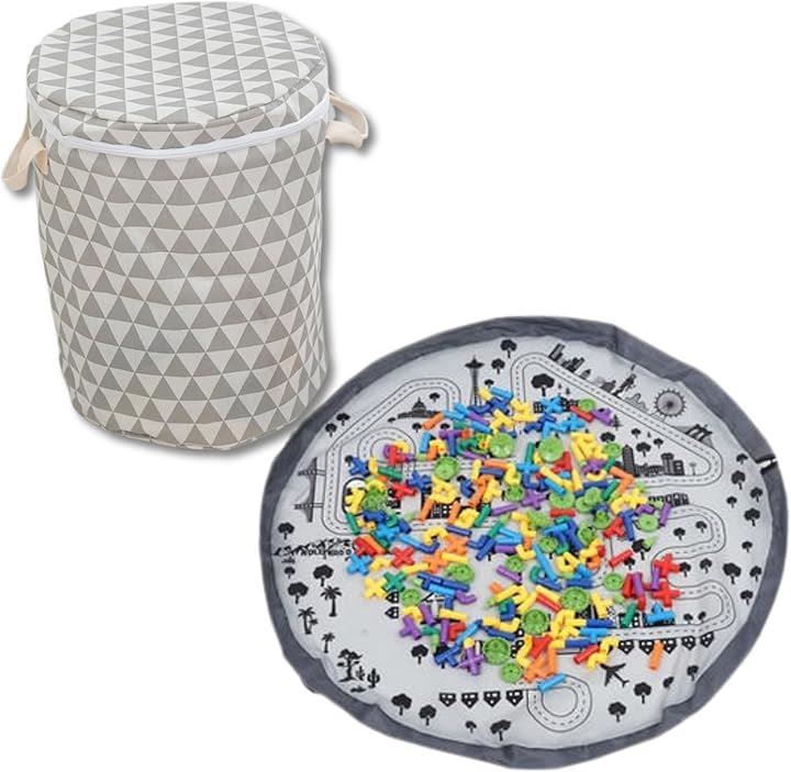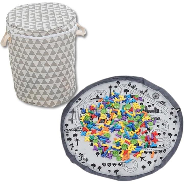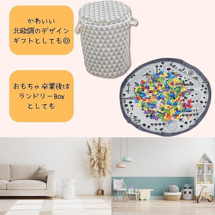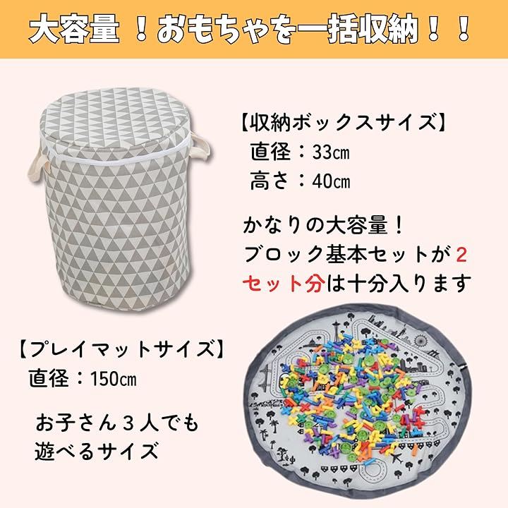 おもちゃ収納 & プレイマット 2WAYセット直径150cmお片付けマット 一体型 収納ボックス 収納バケツ おもちゃ箱 簡単お片付け 巾着式 ブロック ぬいぐるみ おままごとに最適 北欧風デザインマット