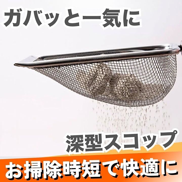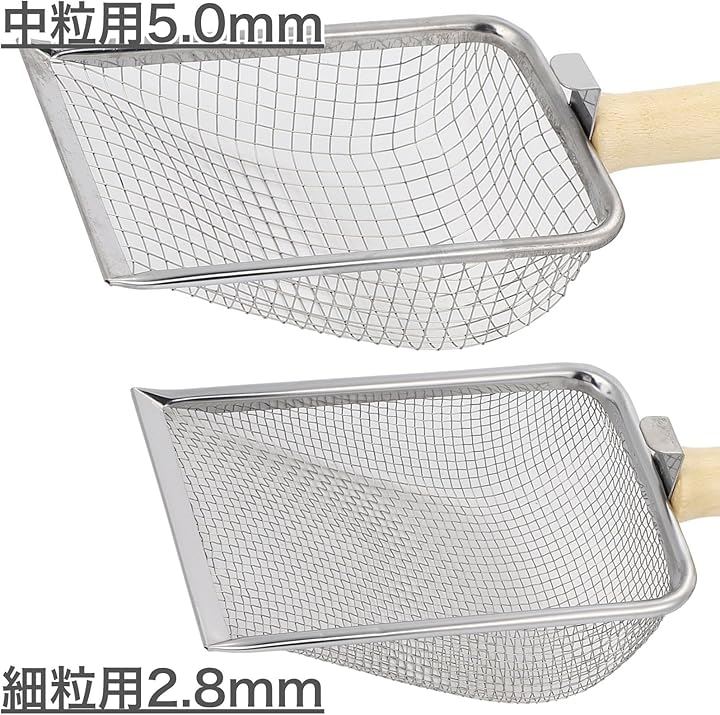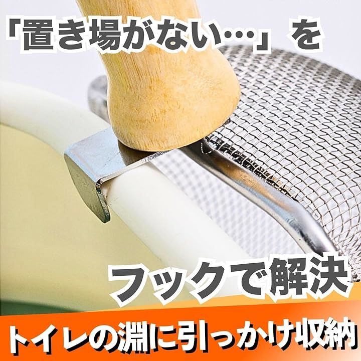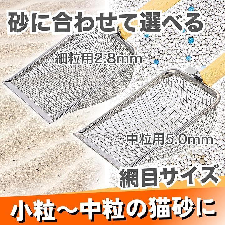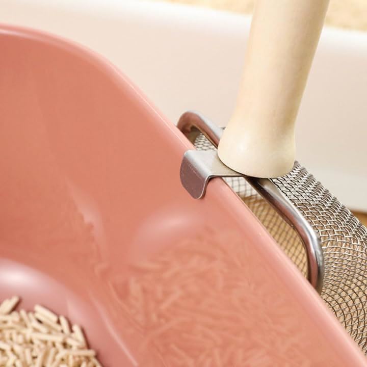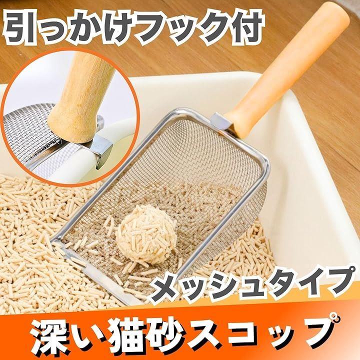 猫砂スコップ ステンレスメッシュ ひっかけ フック 深型 木製グリップ