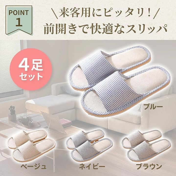 スリッパ 来客用 4足セット メンズ レディース 洗える 室内 ルームシューズ 前開き