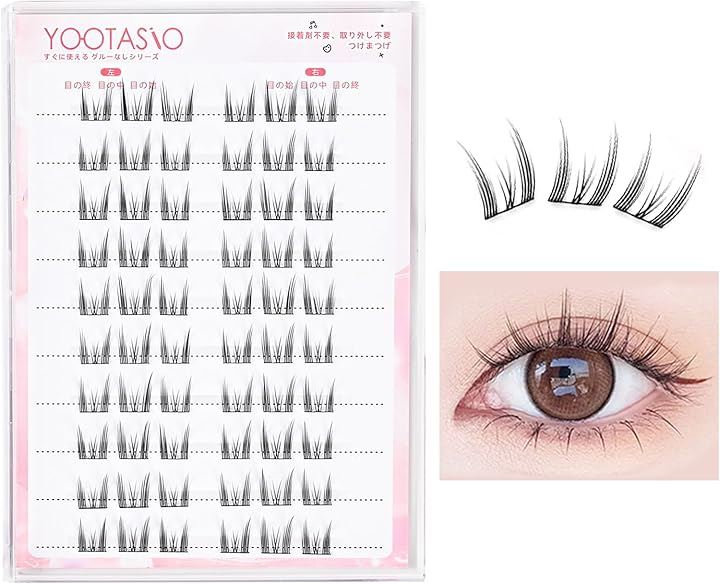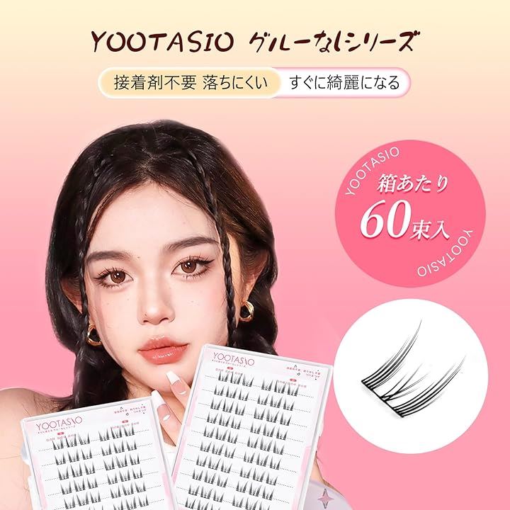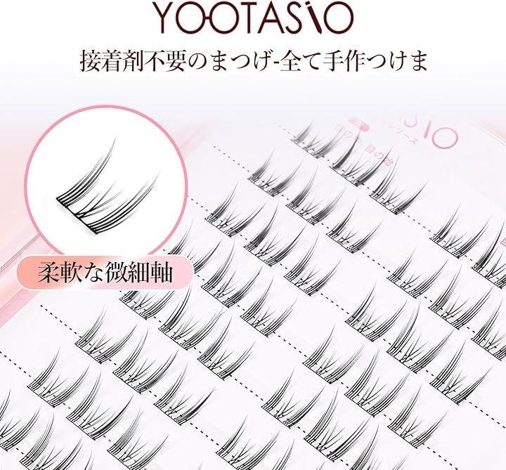 「柔軟な透明軸つけまつげ束感」YOOTASIOこのつけまつげは、アイドルグループのステージメイクからインスパイアされ、繊細な繊維とボリューム感で自然な束感を実現します。
