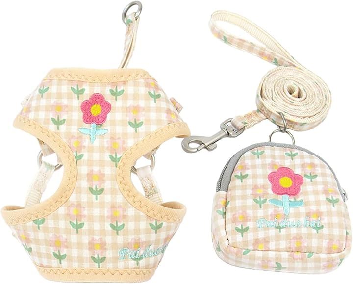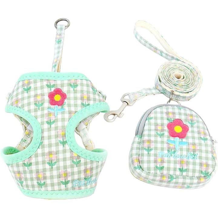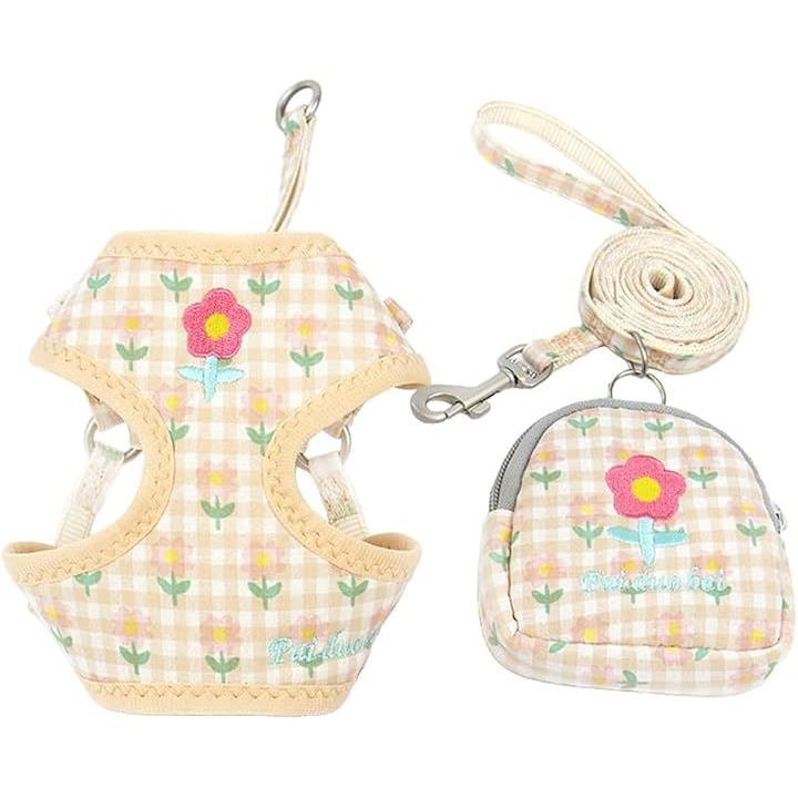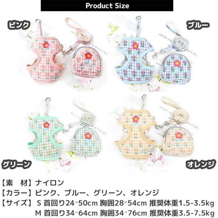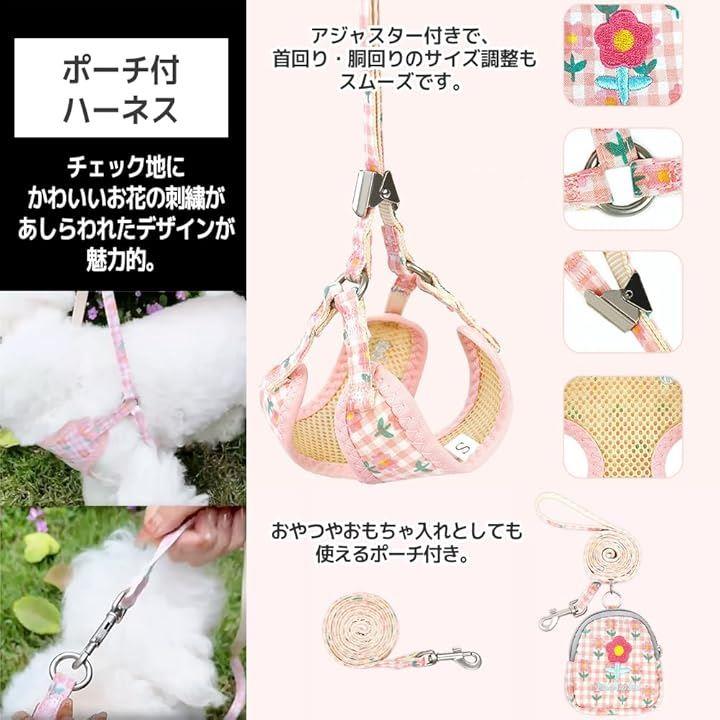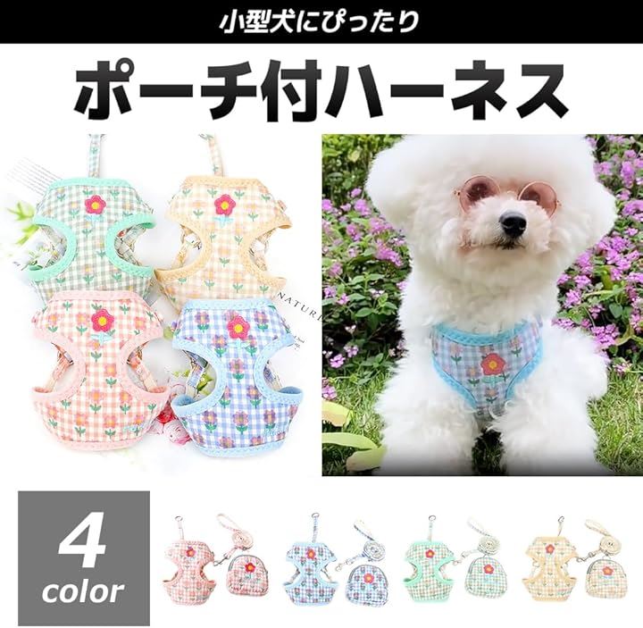 犬 ハーネス ポーチ リード 花柄 犬用リード ポーチ付ハーネス