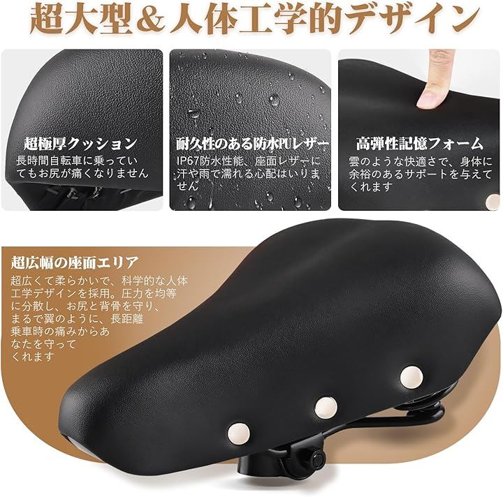 自転車サドル 低反発素材 衝撃吸収設計 防水防滑 超極厚 痛くないサドル ママチャリ/電動アシスト自転車/ロードバイク/マウンテンバイク/クロスバイク対応