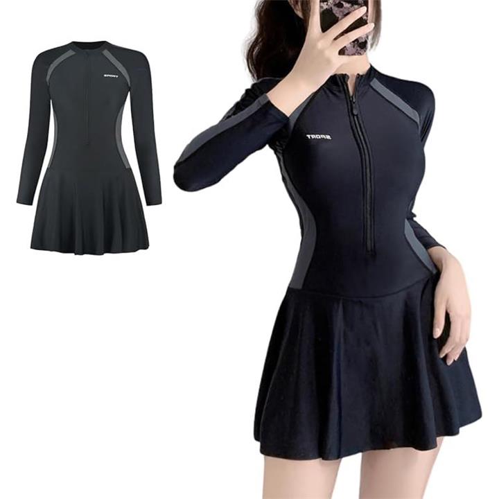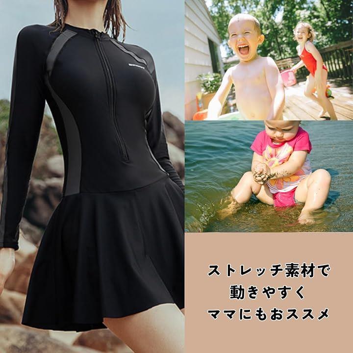 ママに嬉しい体型カバー水着 レディース ワンピース型 ラッシュガード 長袖水着 アンダーショーツ付き UVカット スリム見えデザイン 着やせ効果