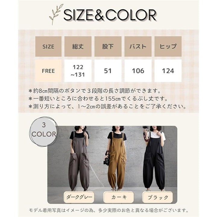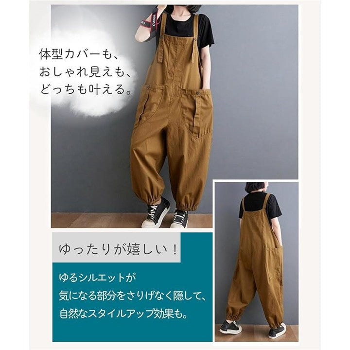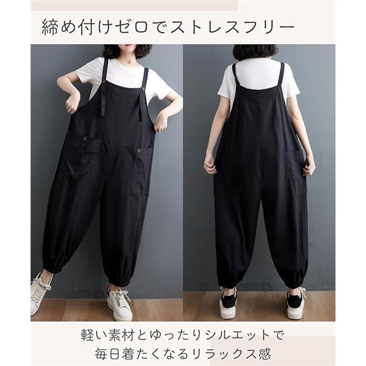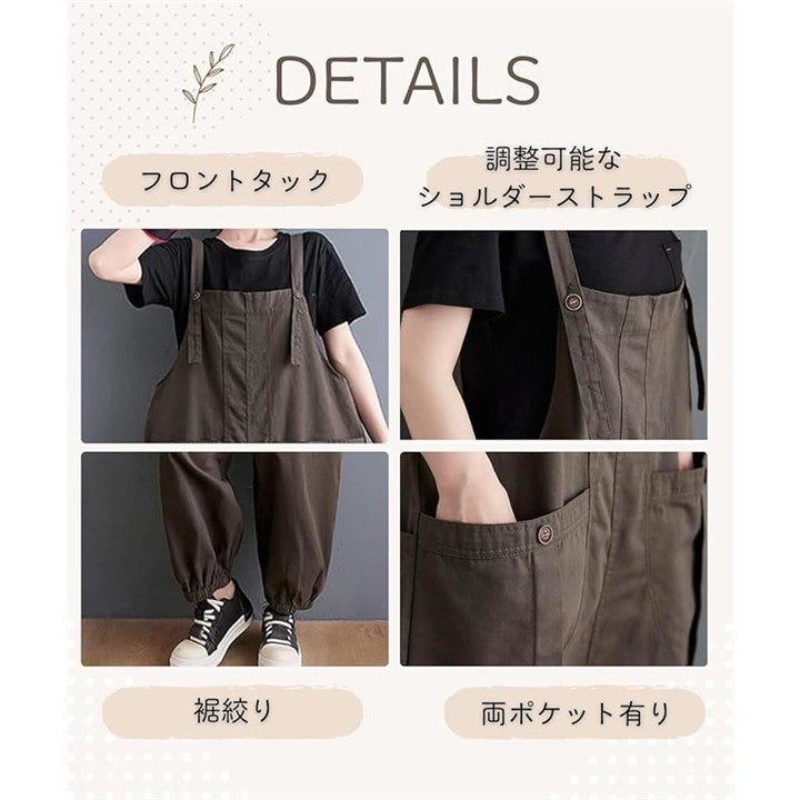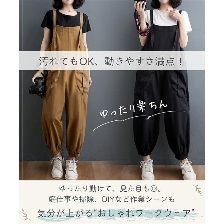 エリクシオ サロペット オーバーオール レディース つなぎ 作業着 ワイドパンツ カーゴパンツ ゆったり 体型カバー 大きめ 低身長 涼しい 夏