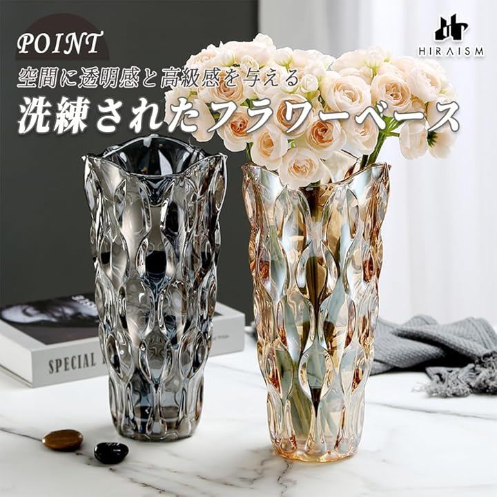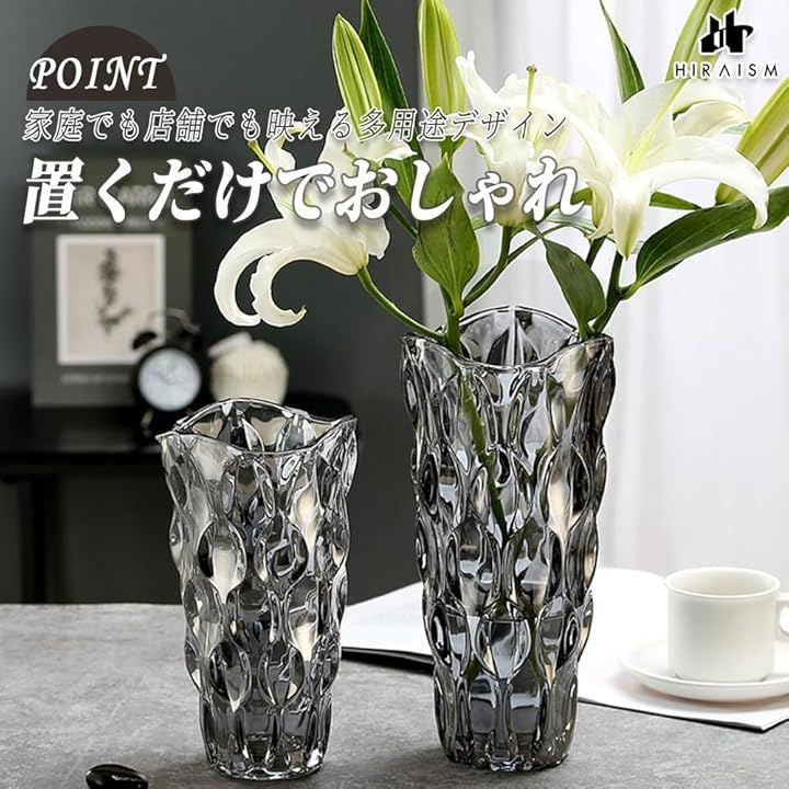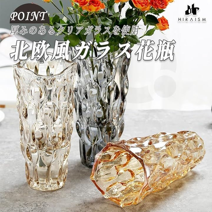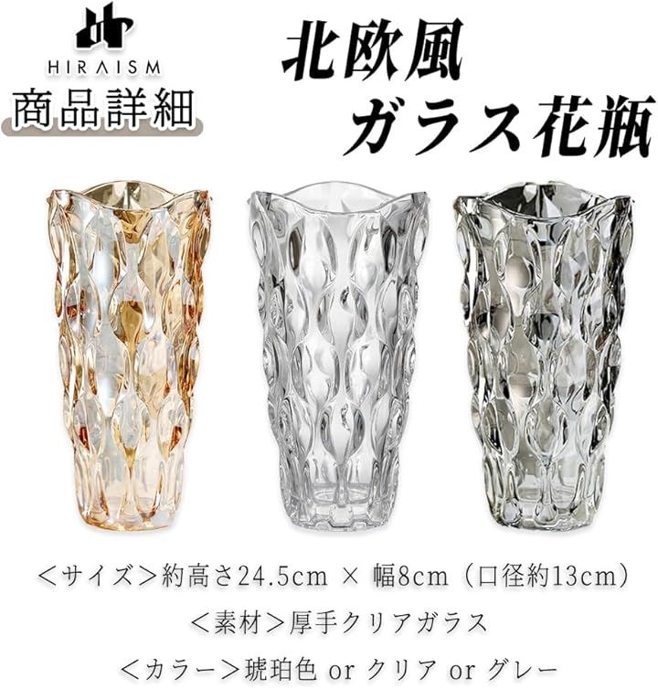 ガラス花瓶 北欧風 厚手 透明 フラワーベース インテリア 装飾 卓上 花器 リビング ホテル用