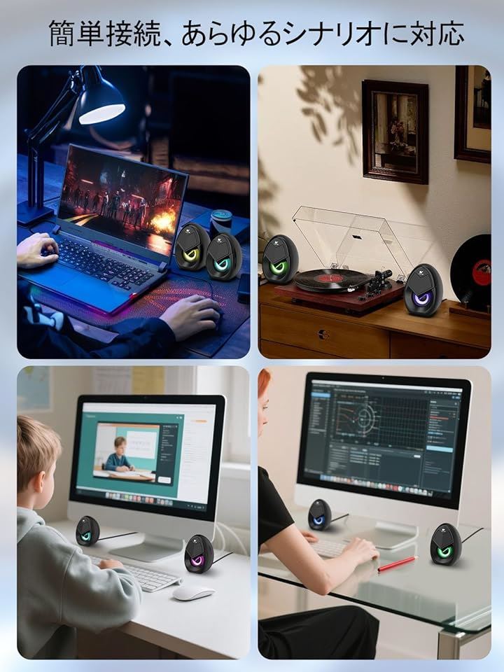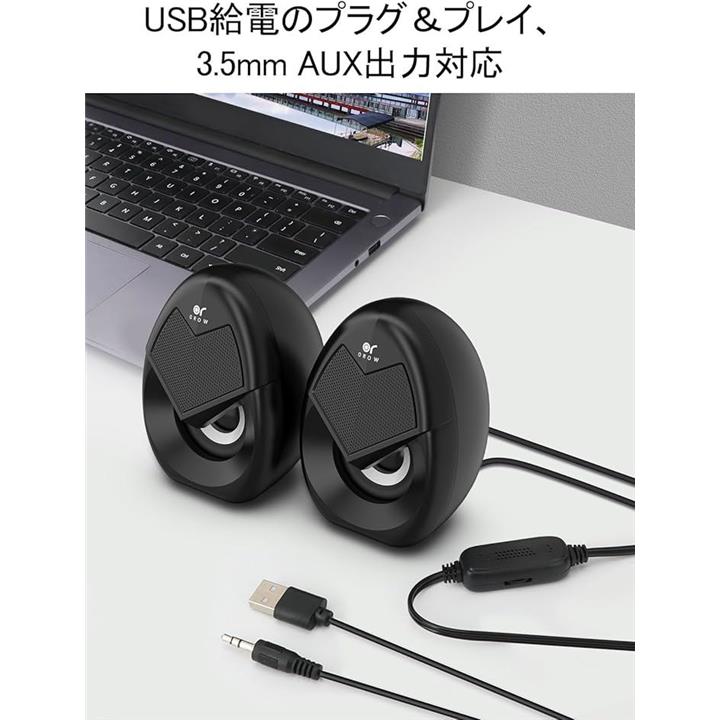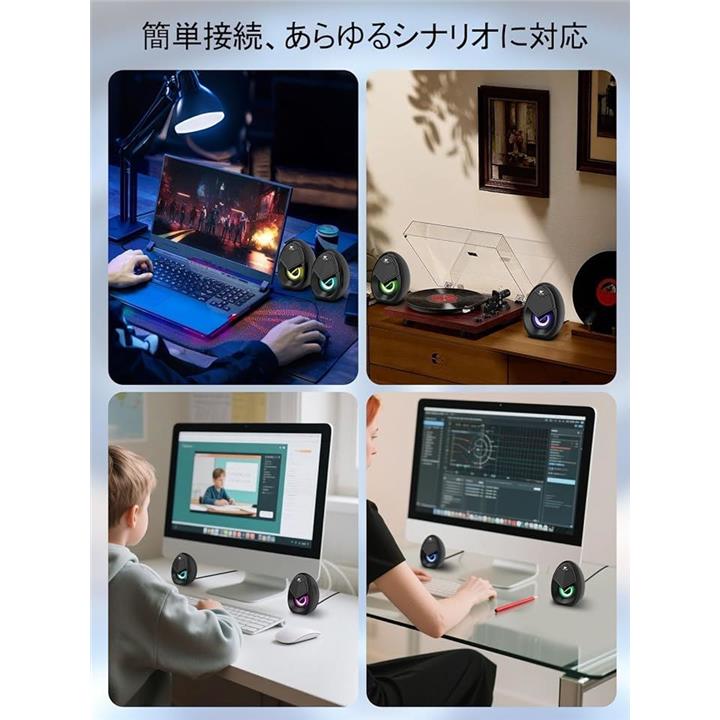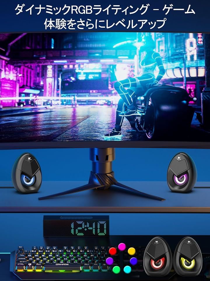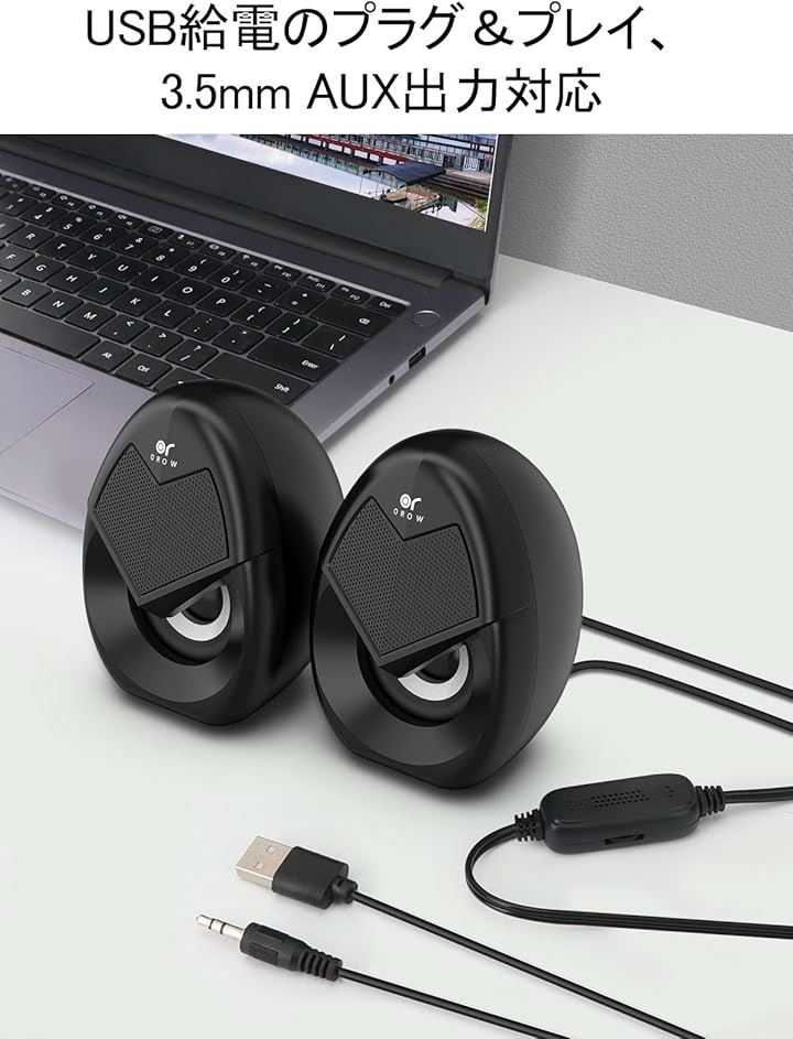 互換品OROW PCスピーカー 小型 パソコン用 ステレオスピーカー 2.0ch 10W出力RGBスピーカー モニター用 テレビスピーカー ゲーミングスピーカー usb接続 3.5mm入力対応