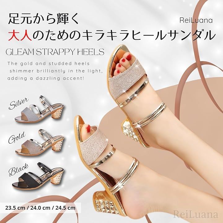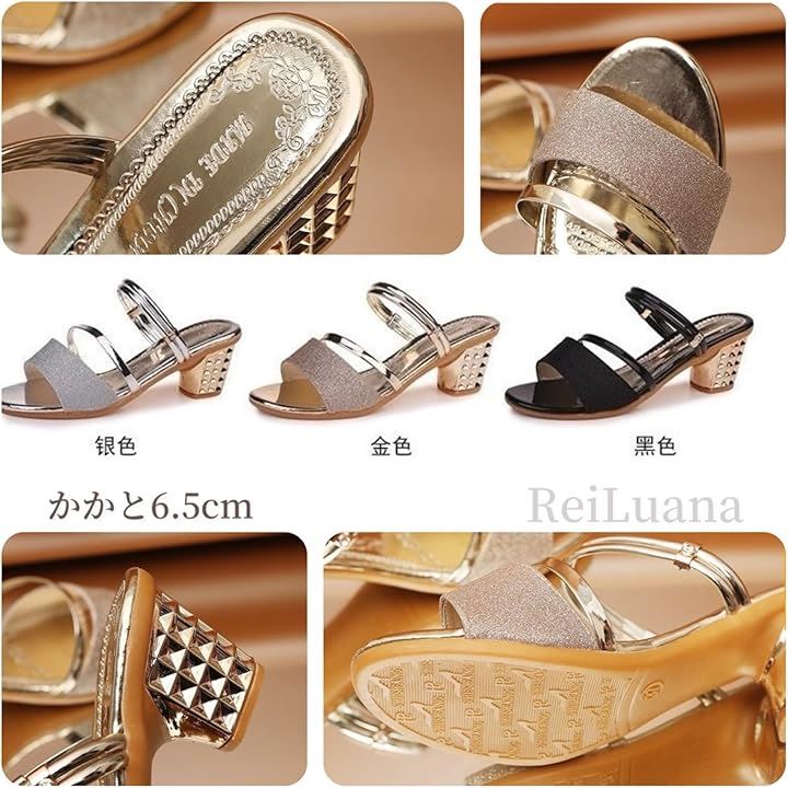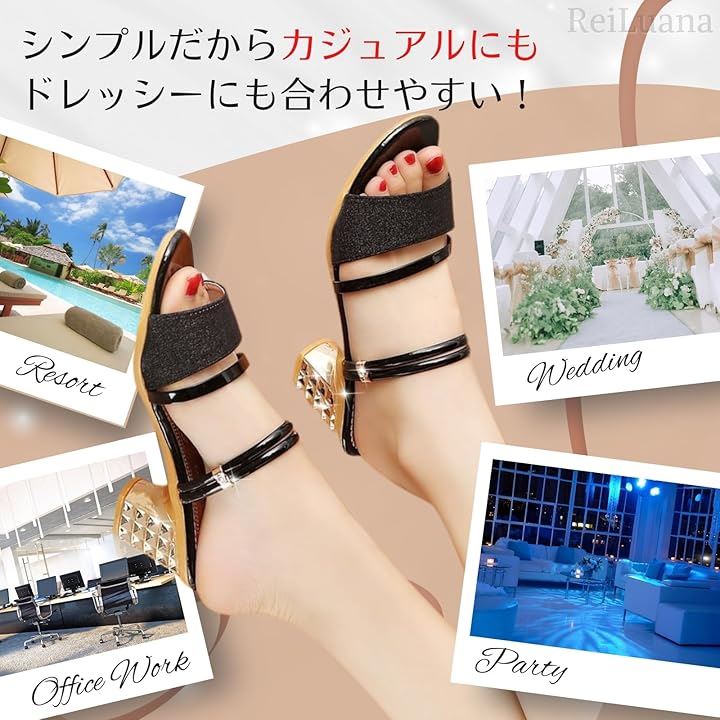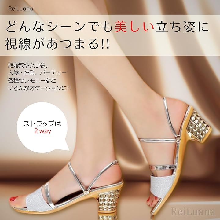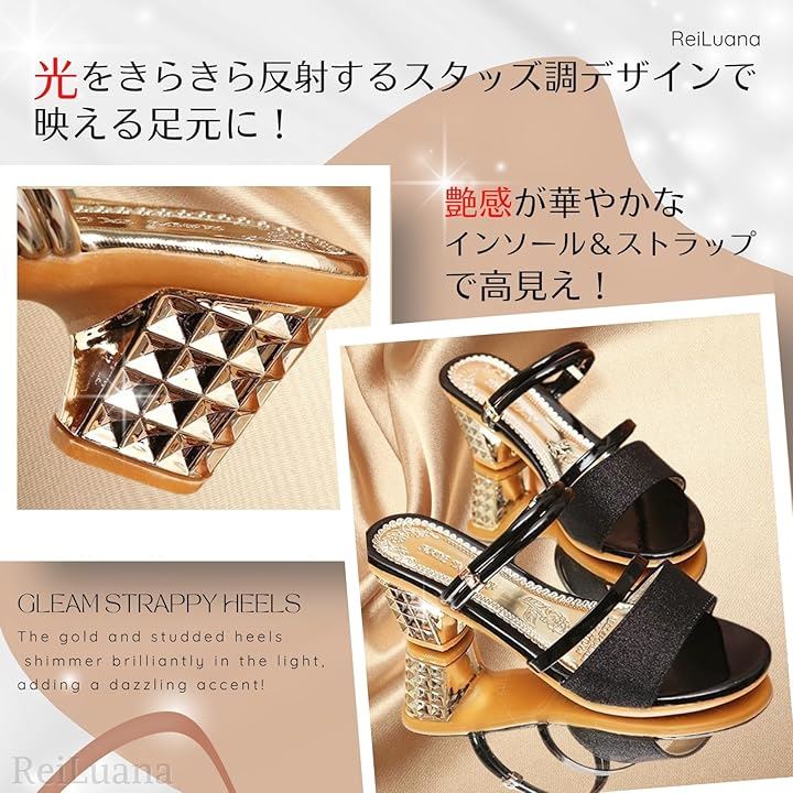 [ReiLuana] レディース サンダル 太ヒール 靴 ストラップ オープントゥ パーティー キラキラ 人気 可愛い おしゃれ スタッズ 太 ヒール チャンキー カジュアル オフィス 美脚サンダル セクシー 無地 前すべり 防止 軽量 きれいめ 厚底 美脚 |