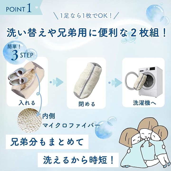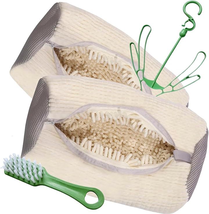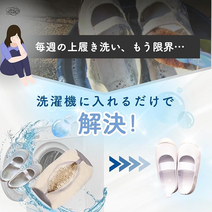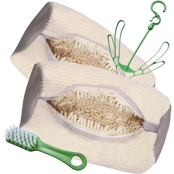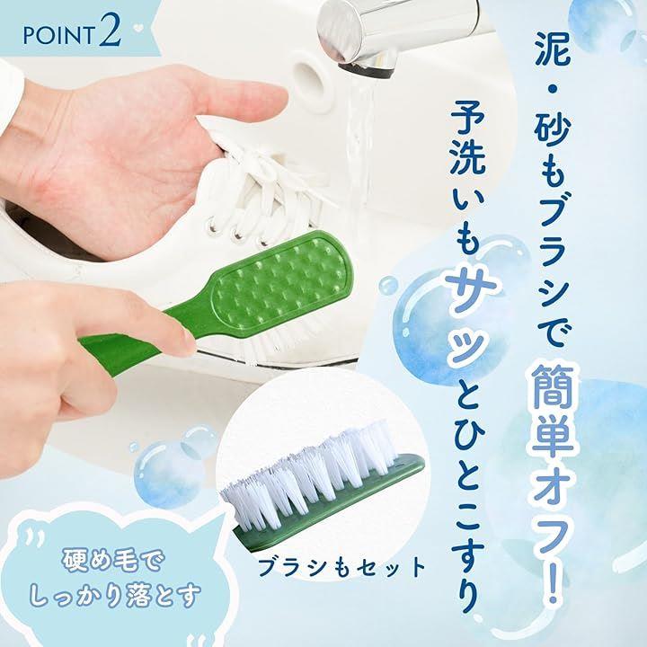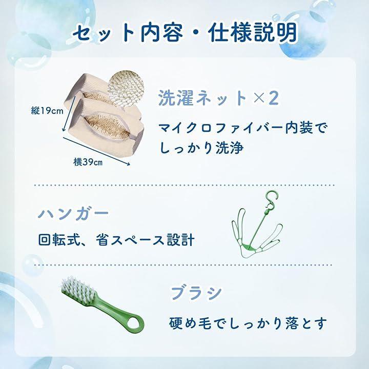 子供の上履き専用 靴洗いネット 3点セット 洗濯ネットx2 靴干しハンガー ブラシ マイクロファイバーでしっかり洗浄 洗濯機OK 時短 静音 丸洗い対応