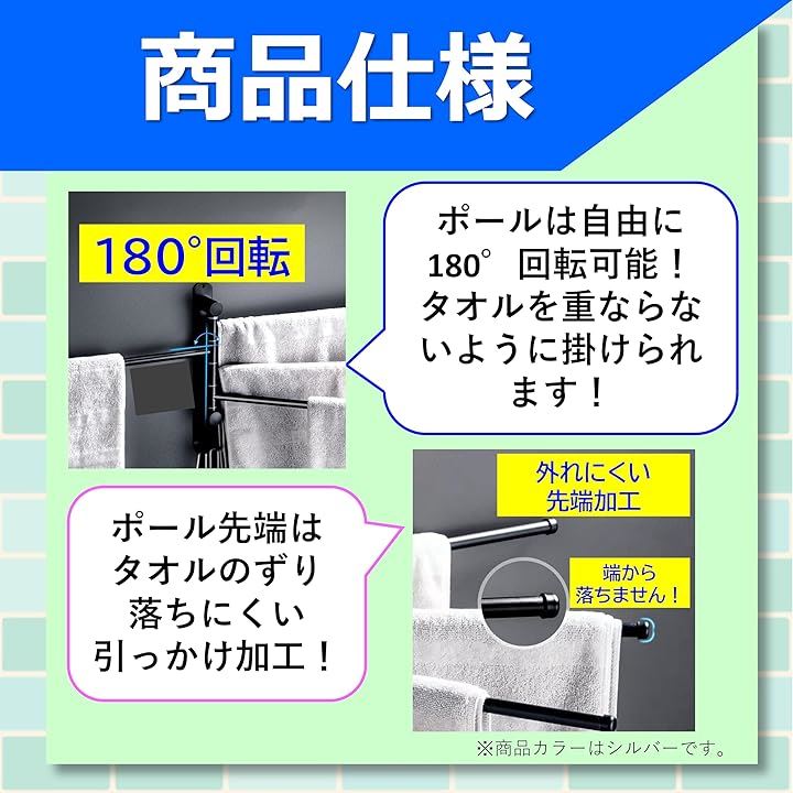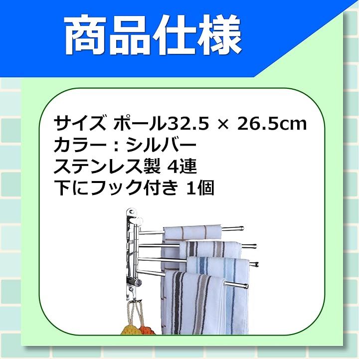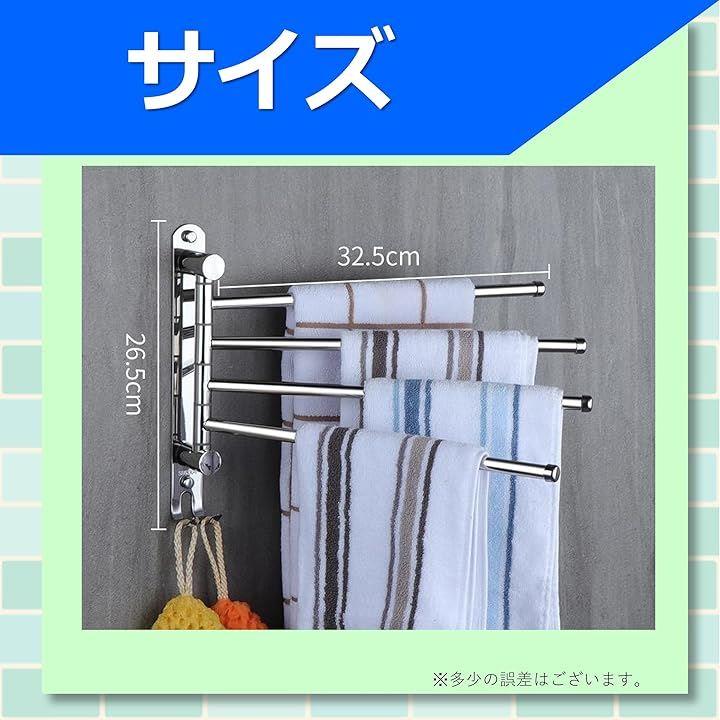 タオルハンガー スイングアーム式 タオル掛け 壁掛け ステンレス製 省スペース設計 洗面所 キッチン バスルーム用 つや消し仕上げ
