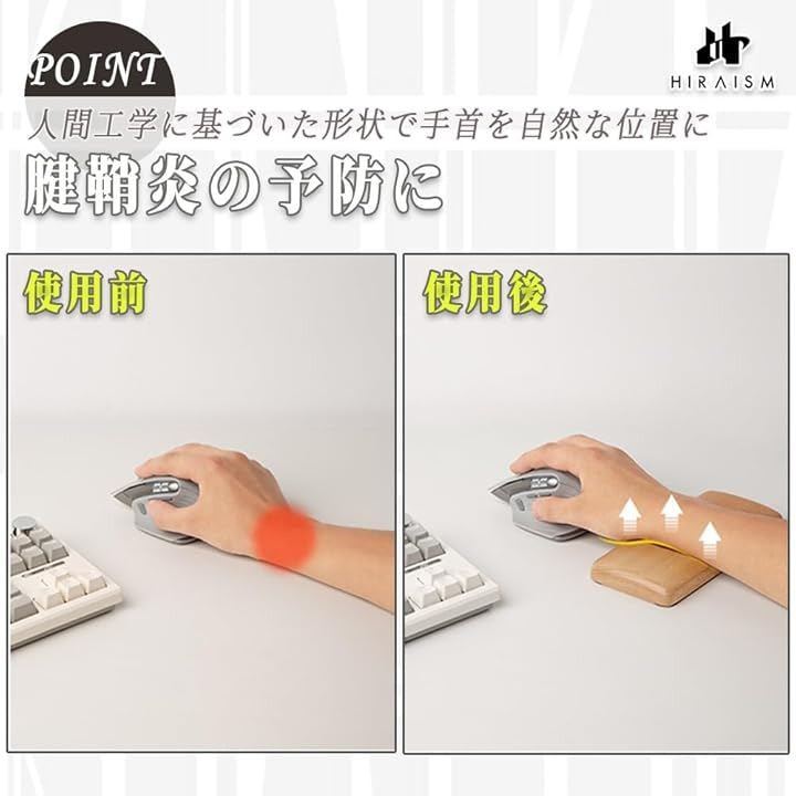 木製 マウス パッド 手首 クッション 一体型 リストレスト 天然木 無垢材 人間工学 オフィス ゲーミング