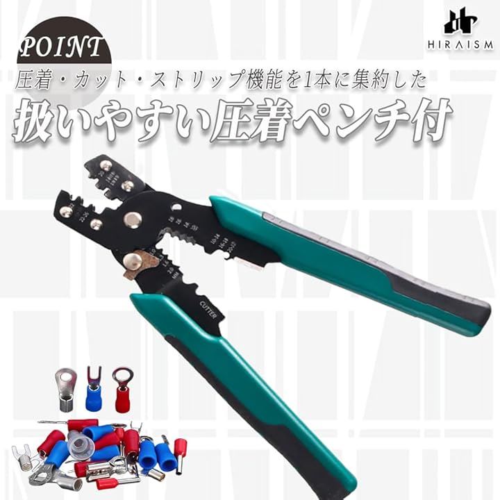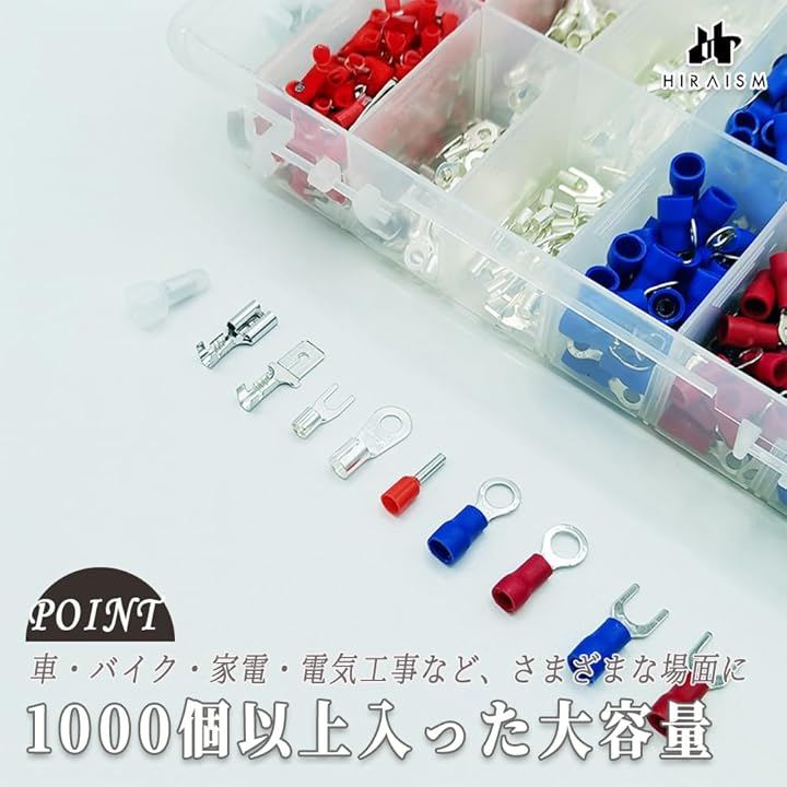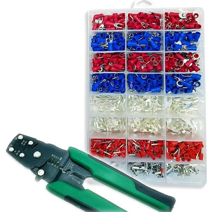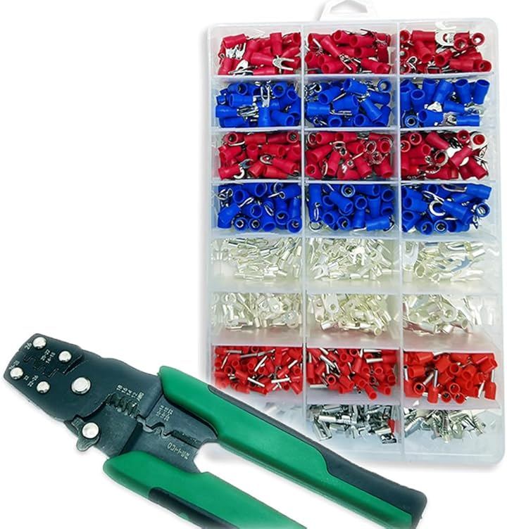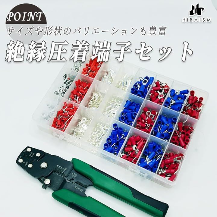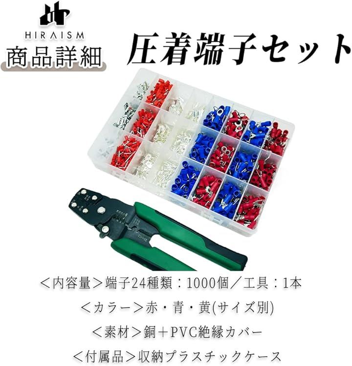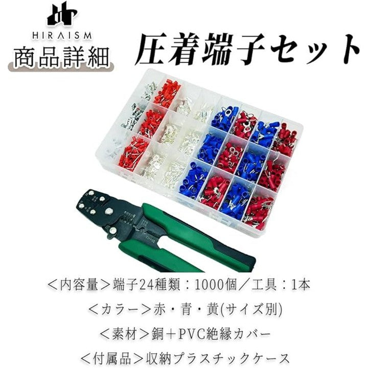 圧着端子 圧着ツール セット 絶縁 配線 電線 接続 DIY 自動車 電気工事 修理 24種類1000個 圧着ペンチ 付き