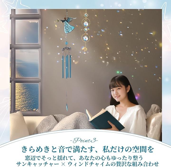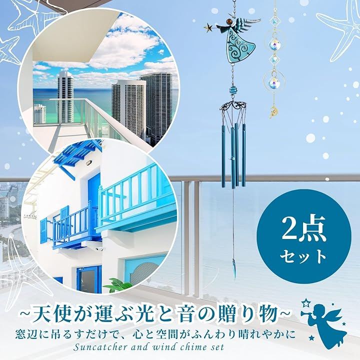 風鈴 サンキャッチャー 水晶 クリスタル 天使 セット ガラス ウィンドチャイム おしゃれ 手作り風鈴 金属 風水 インテリア 窓 玄関