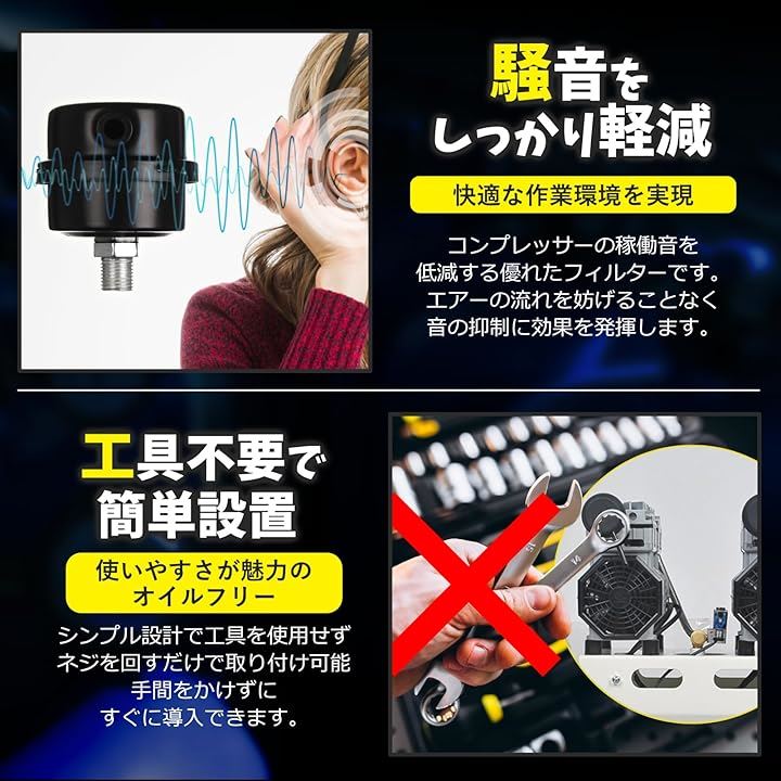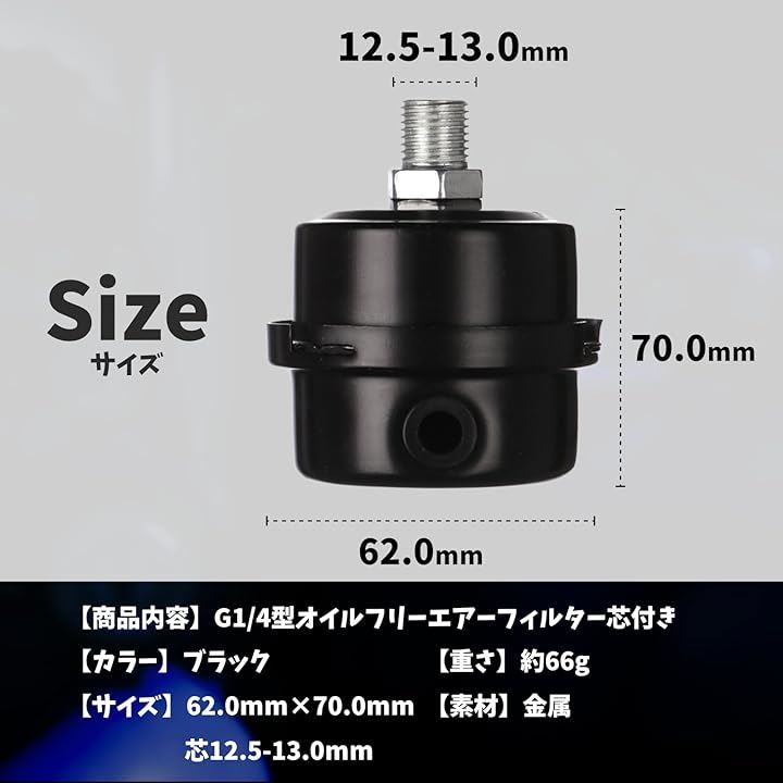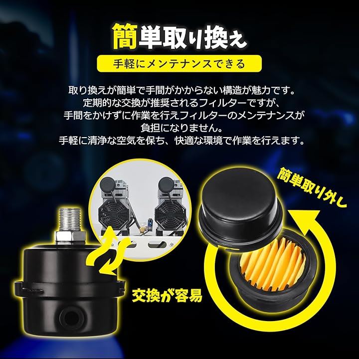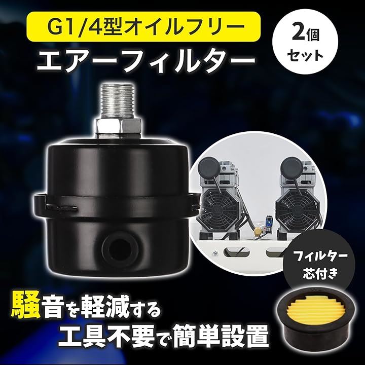 互換品 エアフィルター 空気圧縮機 芯付き ミニポンプ 消音器 オイルレス エアーポンプ 交換部品 2個 G1/4型 12.5mm