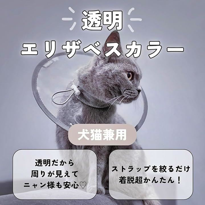 透明エリザベスカラー 犬猫用 軽量 調節可能 傷舐め防止 去勢手術後保護 視界を妨げないデザイン ソフト素材 通気性 ペット用品