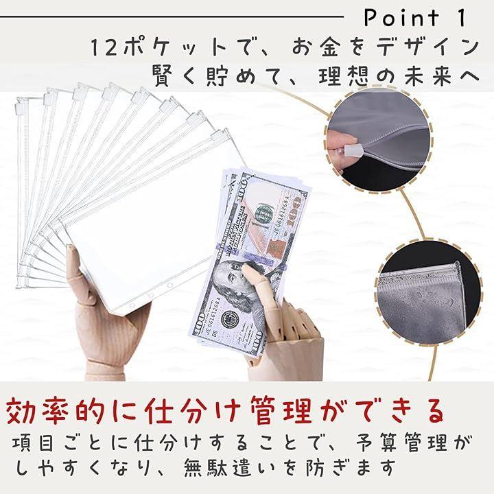 家計管理 ポーチ お金管理 ファイル バインダー 家計簿 ポケット12個付き A6