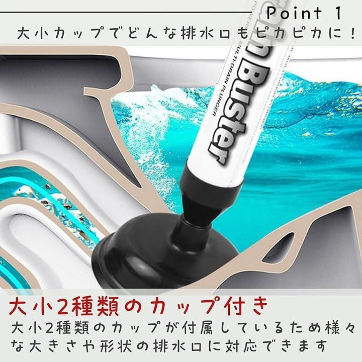 パイプクリーナー すっぽん トイレ ラバーカップ 排水溝 つまり トイレ詰まり道具 2種類のカップ付き
