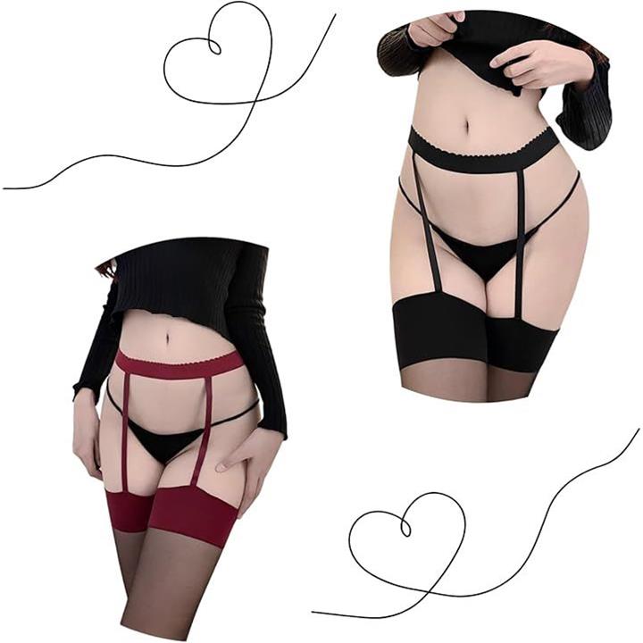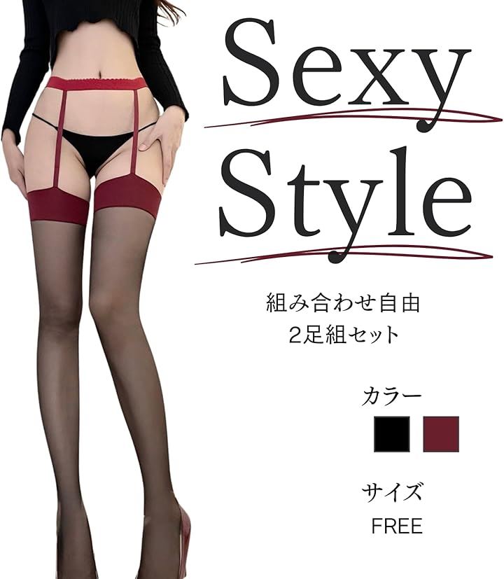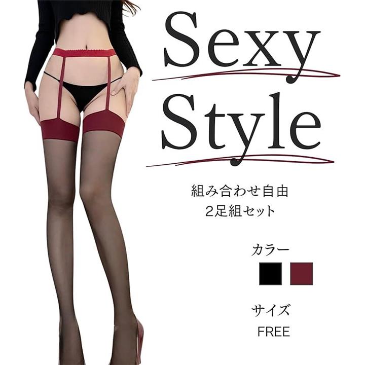 2足 セット レディース ガーター ニーハイ セクシー 透け シースルー ストッキング ランジェリー ガーターベルト タイツ パンスト 付き レース 太もも 丈 色気 枚 脚