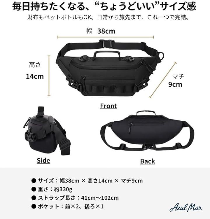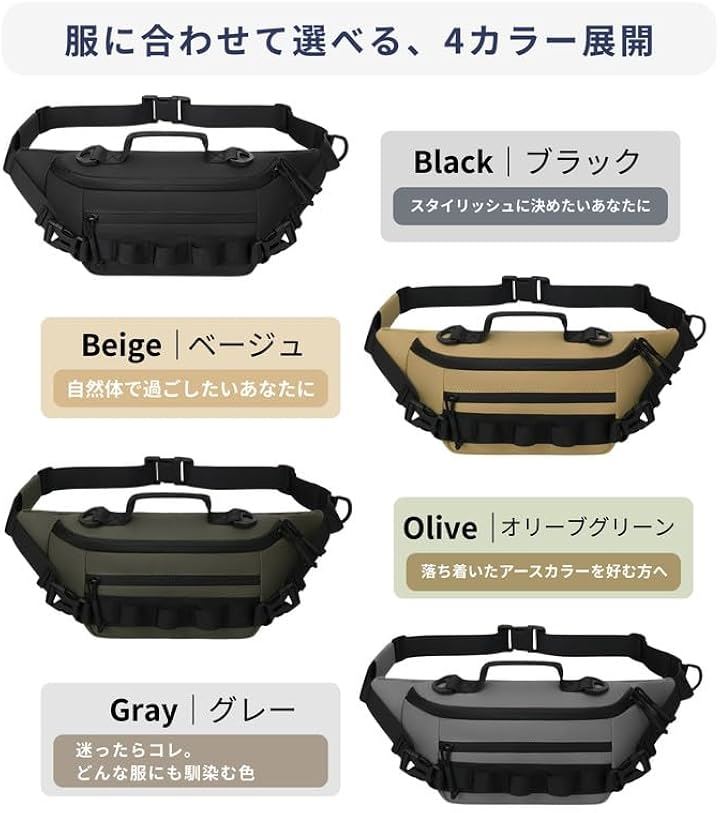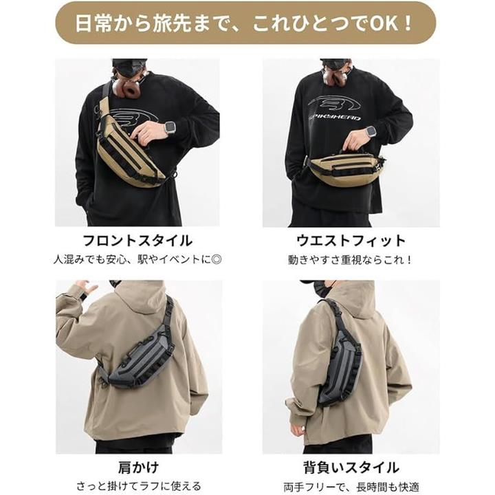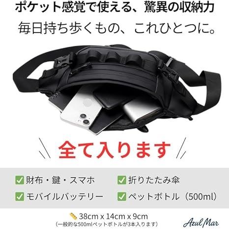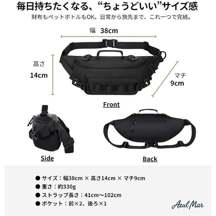 [Azul Mar] 防水 ウエストポーチ メンズ 1000Dナイロン 斜めがけ ボディバッグ 軽量 小さめ 大容量 3WAY 釣り アウトドア 旅行用 ウエストバッグ 多機能 |