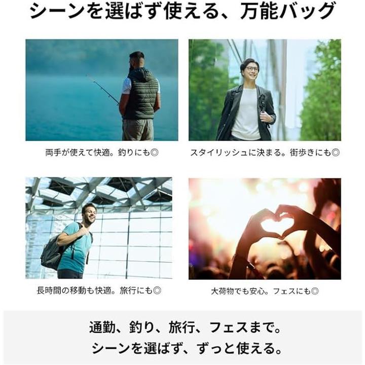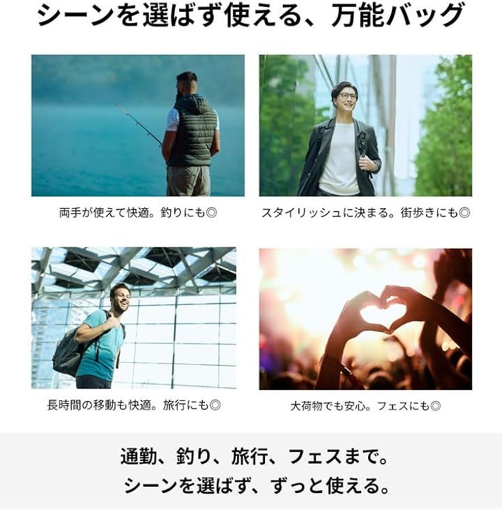 「こんなシーンで活躍」釣り・登山・ハイキング・ジョギング・フェス・キャンプ・バイク・自転車・海外旅行・災害時の備え・通勤通学など、多彩なシーンに対応。