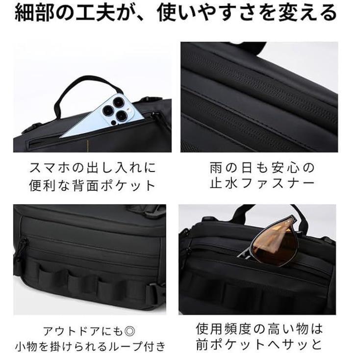 「3WAY仕様で自由自在に活用」本製品はウエストポーチ、ボディバッグ、ショルダーバッグとして使える3WAY仕様。