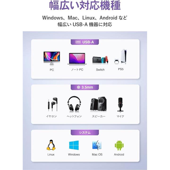 互換品 USB オーディオ 変換アダプタ USB2.0 to 3.5mm 外付け サウンドカード DAC搭載 24bit/96KHz対応 直挿しタイプ 3極 TRS専用 イヤホン PS4 等適用 Windows/Mac